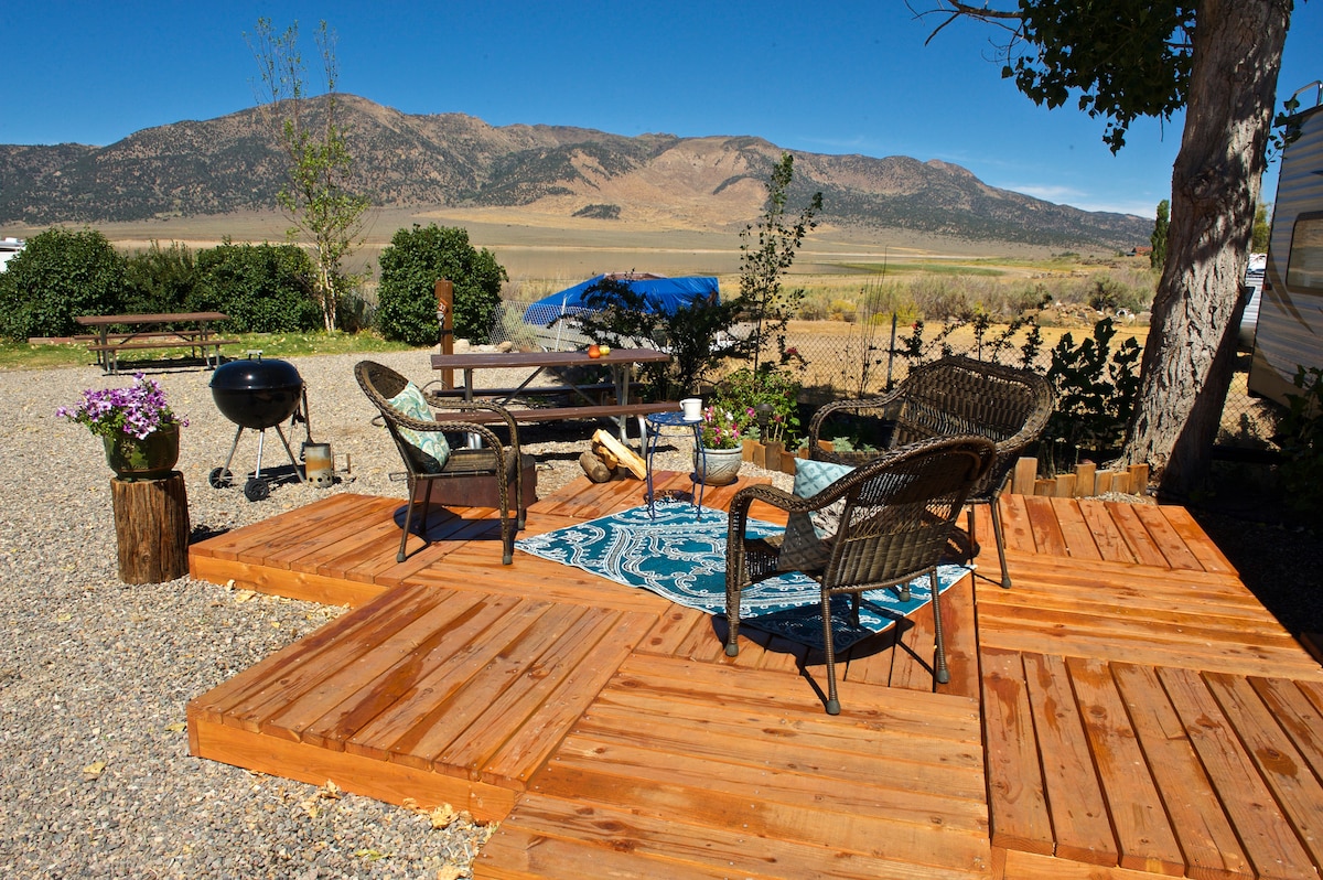 Enjoy the lovely setting of this romantic spot in nature. Lakeside living meets Eastern Sierra mountain views in this Stylish Tent Cabin Sanctuary. Opt to leave your tent at home to stay in this top-notch furnished tent cabin. Complete with solar power, a small fan, propane space heater, BBQ grill, palapa umbrella, fire pit, and an outdoor picnic table you will enjoy an exceptional glamping experience.