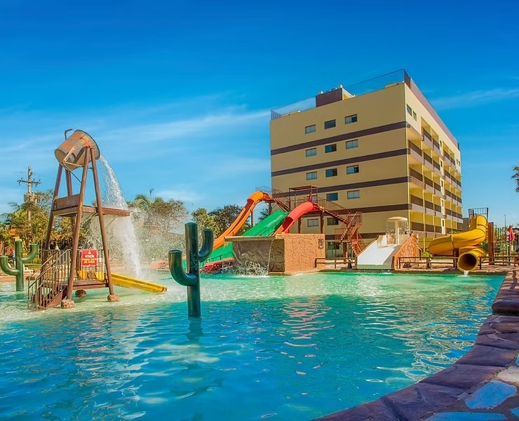 Barretos Party and your vacation will be guaranteed the best accommodation in the region, Apartment complete with hotel service, bed and bath linen, Resort in the Best Hot Water Park in Olímpia. Thermas Resort Hot Beach Your car in covered parking, safe, without unforeseen circumstances. Full kitchen: refrigerator, stove, microwave, coffee maker, balcony with a privileged view and barbecue Shampoo, conditioner, soap, paper, premium bedding Pool, gym, playground