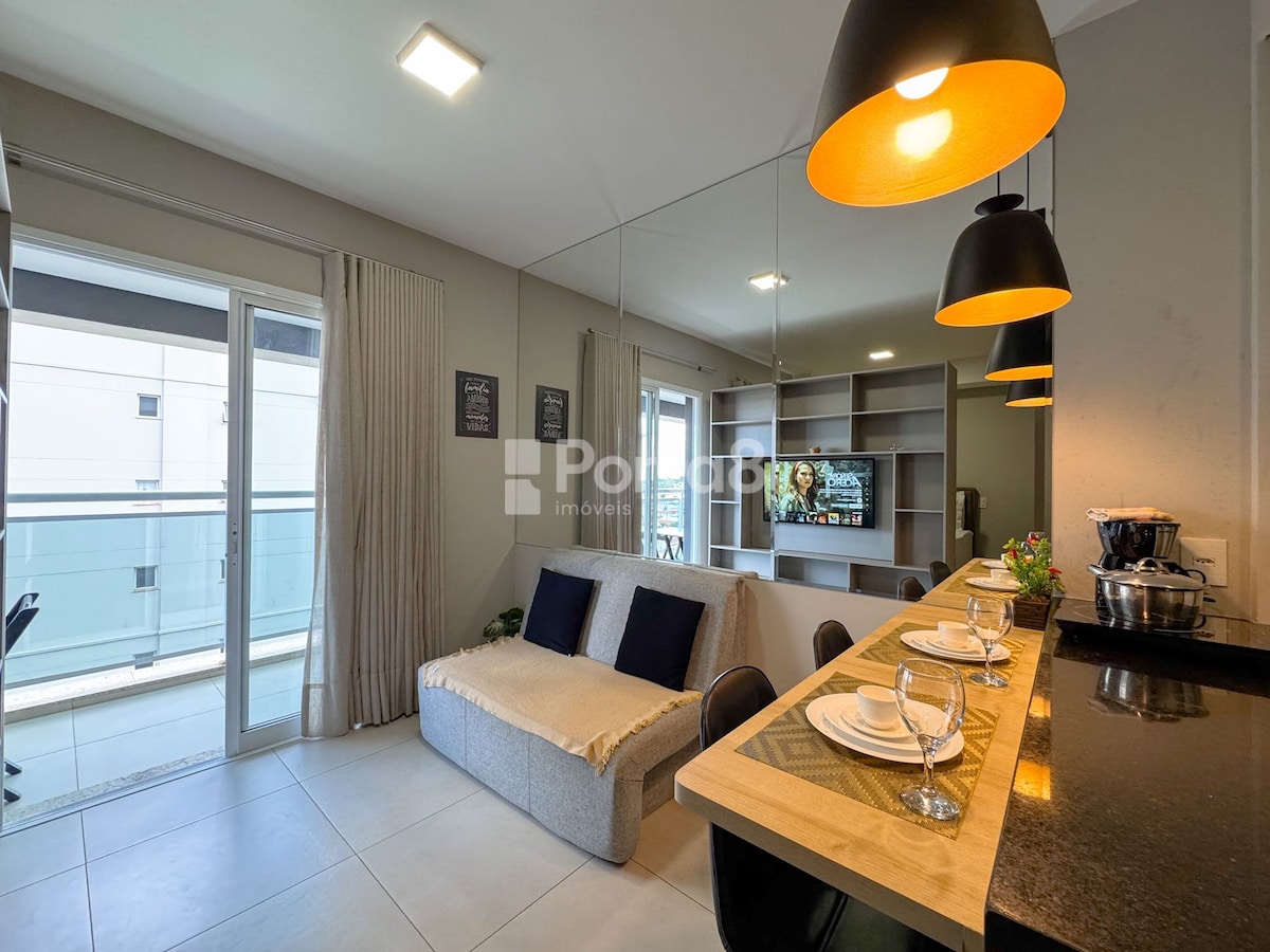 Seja bem-vindo a um verdadeiro ninho de tranquilidade! Com uma mobília de qualidade e um ambiente integrado, aqui você se sentirá em casa! A cozinha está equipada com tudo o que você precisa para preparar suas refeições. O quarto é um convite ao descanso, com uma cama queen e enxoval completo. Um sofa, mesa de apoio com cadeiras e SmartTV garantem seu entretenimento. Para apreciar a vista, nossa varanda aberta possui uma mesa aconchegante. Vem se sentir em casa!