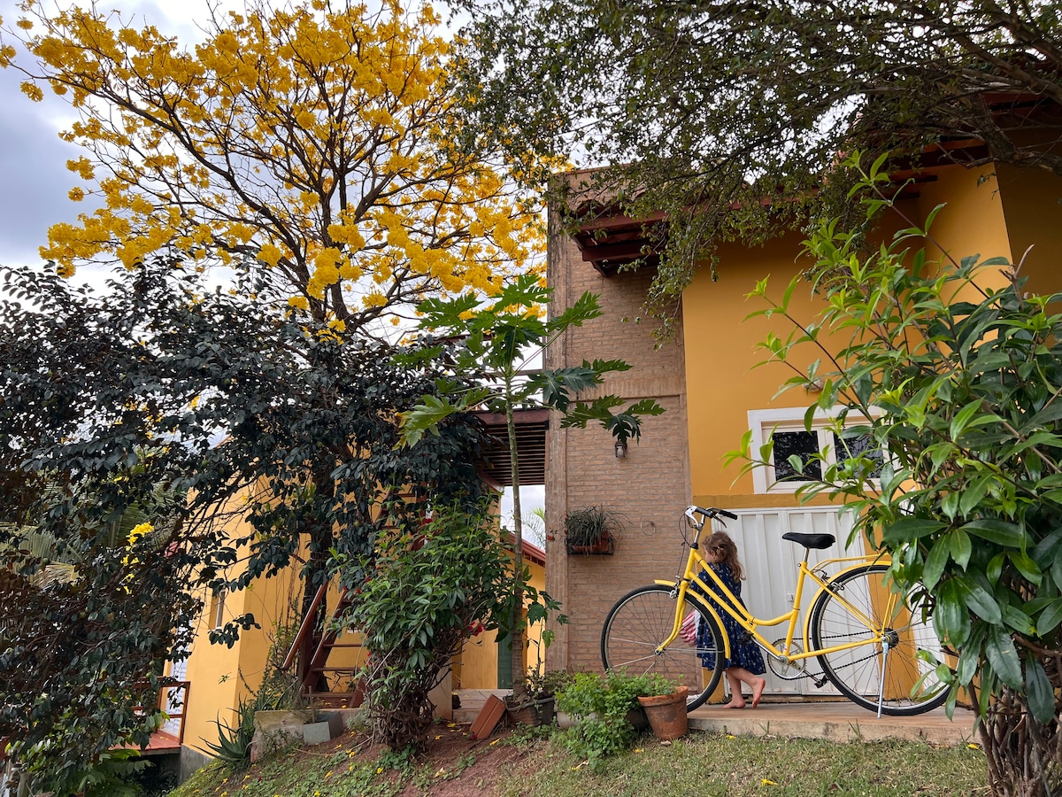 Somos uma casa simples e aconchegante, amamos plantas, animais de estimações são bem vindos. A casa é estilo loft/studio em terreno compartilhado. Conta com sala, smart tv, wifi de 200 megas, geladeira com freezer, equipamentos de cozinha, banheiro com blindex. A garagem é compartilhada sem taxas adicionais, porém só acomoda carros pequenos. A lavanderia é compartilhada e fica em uma área comum.