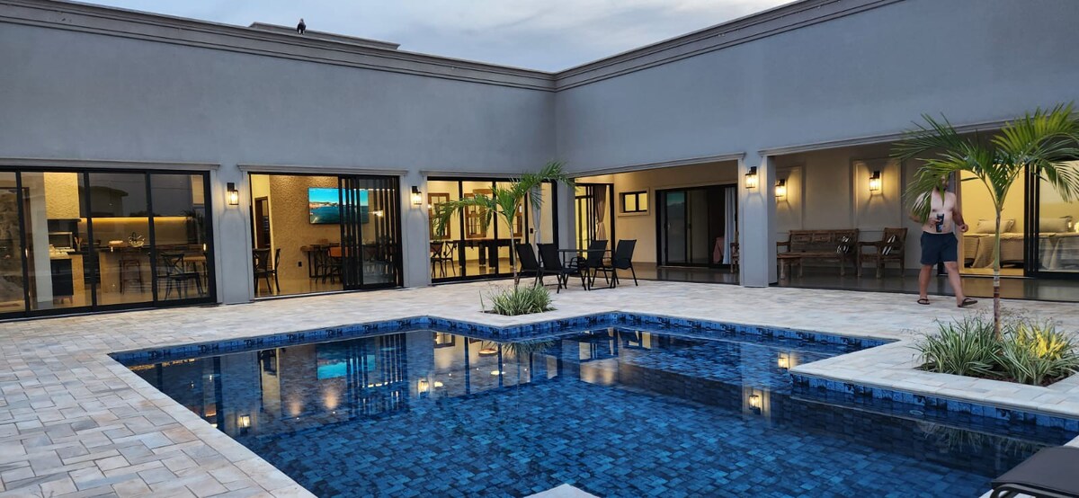 Rancho no condomínio Lago e Sol em Fronteira MG, a 900m da margem do rio grande. Todos os quartos possuem ar condicionado, ventiladores e banheiro. Cozinha externa com churrasqueira, todo integrado com area de piscina. Piscina com aquecimento solar. Rancho com todos os utensílios de cozinha, com fogão cooktop e forno elétrico. Geladeira e freezer vertical. Não possui roupas de cama, toalhas e travesseiros.