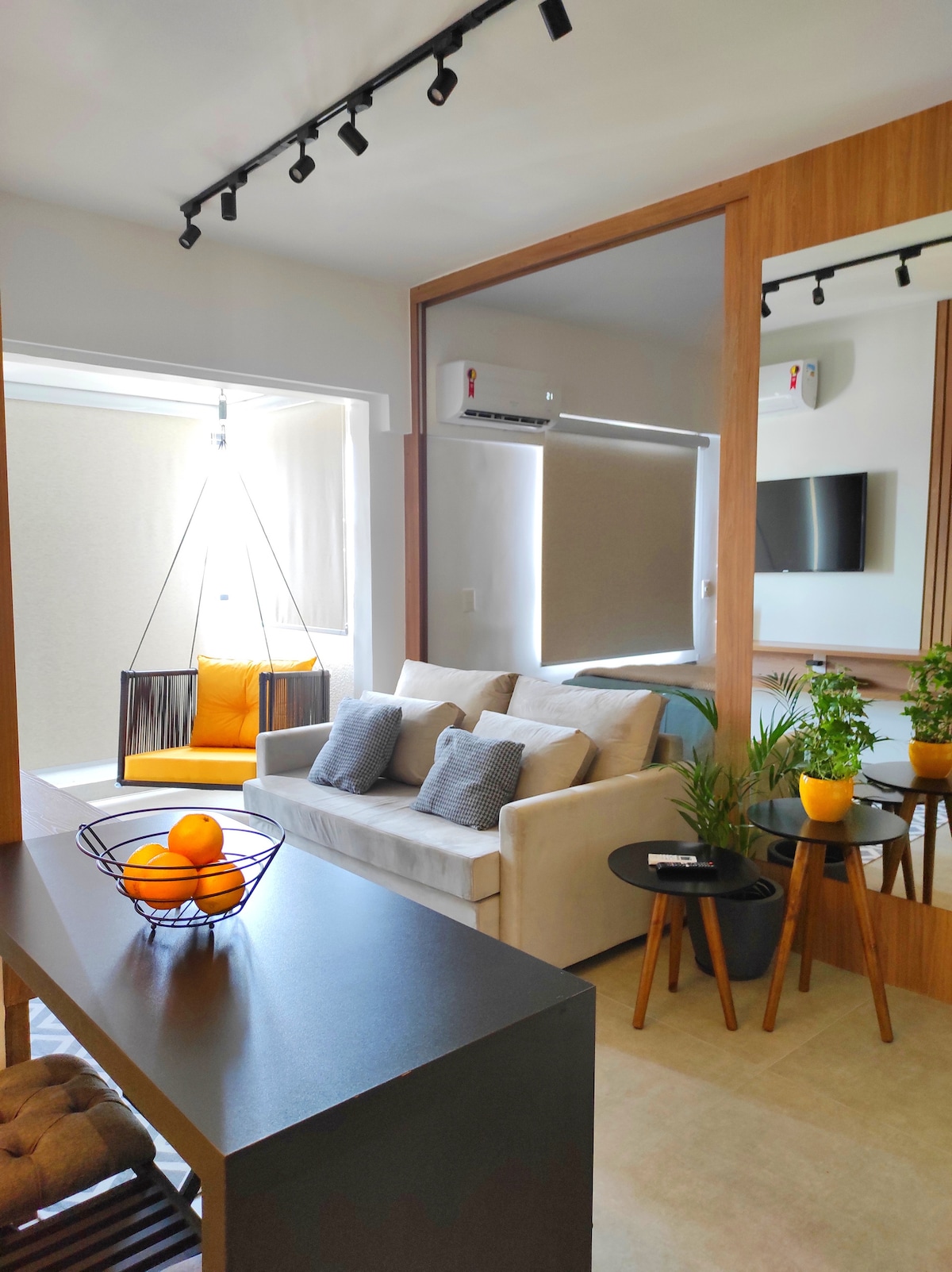 Duplex flat in the Square Faria Lima complex (Comfort Suites) with mezzanine, 2 bathrooms, kitchenette and Nespresso coffee machine. Double bed + sofa bed for up to 3 guests. The building offers a rooftop pool, hot tub, gym, game room and restaurant. 24h front desk. 📍 600m from Hospital de Base, 400m from Beneficência Portuguesa Hospital, 800m from Plaza Avenida Shopping and 1.3km from Riopreto Shopping. Apt 910, 9th floor.