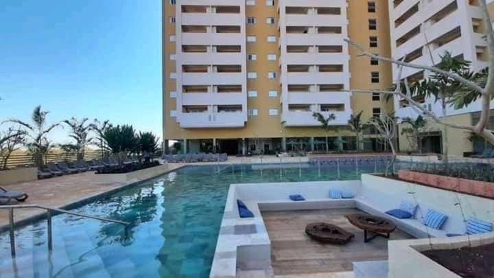Flat ao lado do Thermas dos laranjais em Olímpia com cozinha Sala conceito aberto e cozinha americana dormitório com cama de casal, cama de solteiro, cama auxiliar e sofá cama na sala. excelente para toda família, serviço de hotelaria, piscinas aquecidas, piscinas climatizadas e piscina fria com bar molhado. saunas, parque aquático, sala de Jogos ,brinquedoteca, mini golf, quadra poliesportiva, atividades circenses quadra de beach tênis restaurantes, bares ,monitores, traslado para thermas
