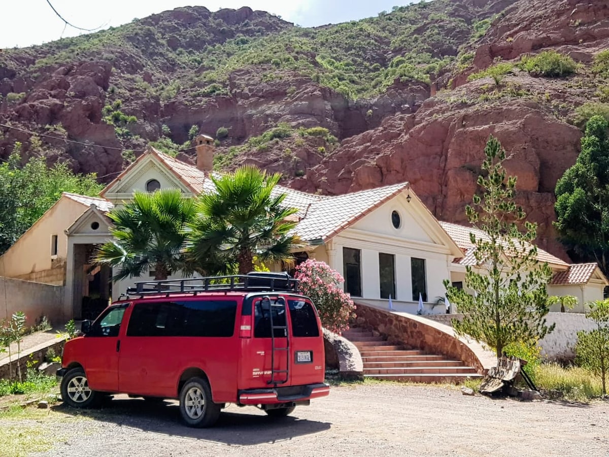 Nuestra cabaña se encuentra en una zona natural virgen, rodeada de frondosos árboles frutales que le dan un toque de encanto y frescura. Aquí el tiempo se detiene. Disfruta de un silencio absoluto, roto únicamente por la dulce melodía del canto de los pájaros, creando un ambiente de paz inigualable. Despierta cada mañana con vistas panorámicas que quitan el aliento de la naturaleza indómita de Tupiza. Un espectáculo visual perfecto para conectar con el entorno.