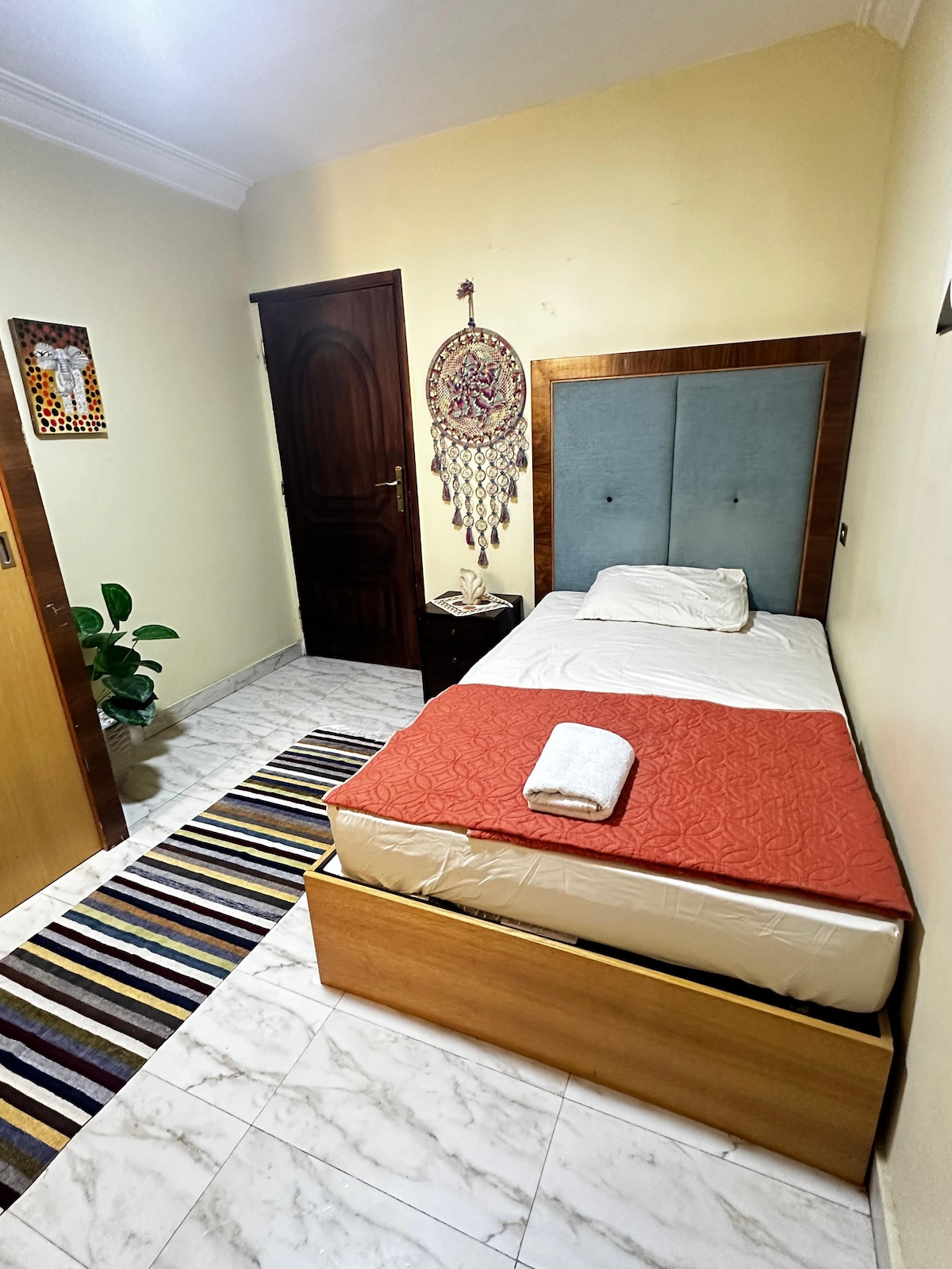 Curated Artisan Apartment in tranquil Zahraa El Maadi. Discover hand-made cement tiles, authentic Egyptian art, and vintage charm in this unique, full-featured one-bedroom (plus sofabed) home. The place is within walking distance from a supermarket, pharmacy, ATM and Wadi Degla sports club for ease of access!