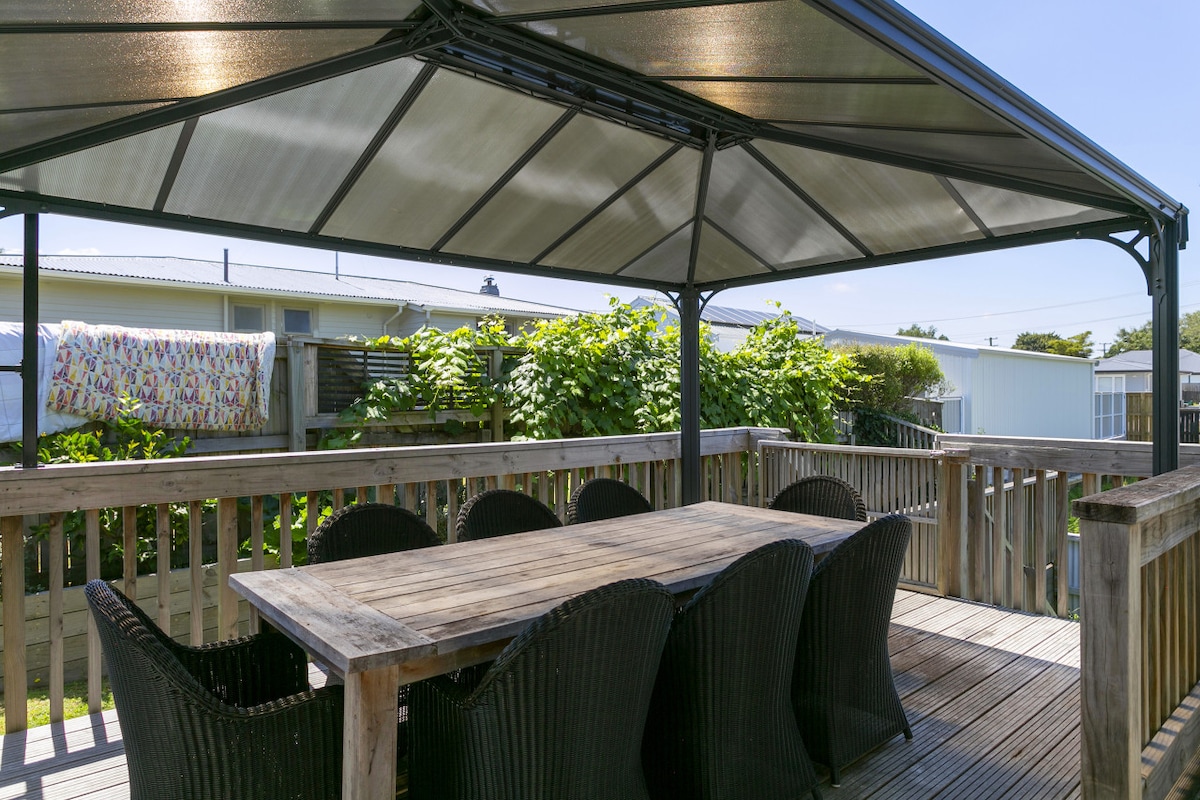 Nestled amongst mature trees and gardens our beautiful home bursts warmth and character. Located across the road from the world famous Tongariro River makes this the ideal location for outdoor adventures including fly-fishing, bike rides & skiing. In the winter relax by the fire, or when the weather is warmer, enjoy the spacious and private section for al fresco living - with decking at both the front and rear you can enjoy your morning coffee, and enjoy a game of Pétanque or Corn Hole.