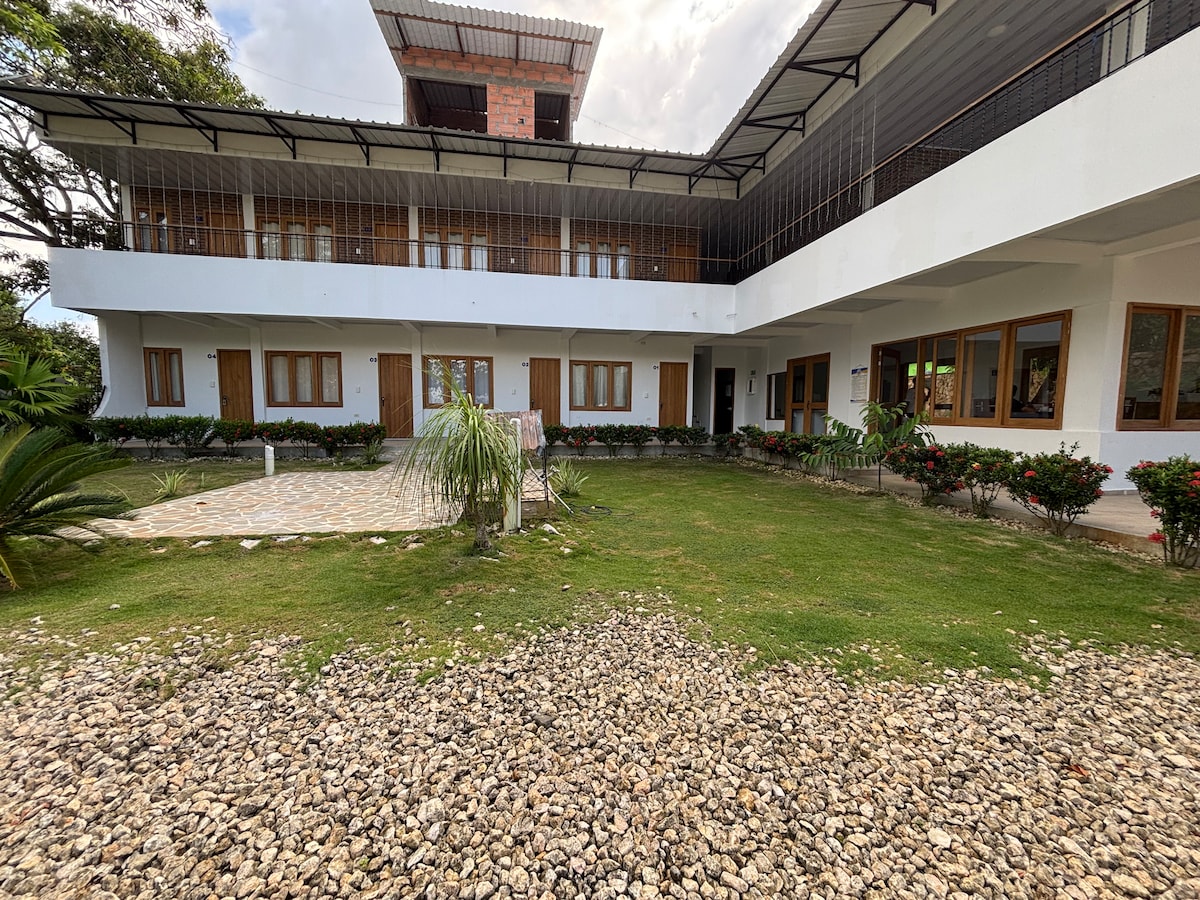Hermoso paisaje caribeño colombiano, al frente del mar y la tranquilidad de las olas. Lugar apropiado para descansar, relajarse y disfrutar solo, con la pareja o familia y amigos. Habitaciones nuevas, con todos sus elementos y un bar en la terraza del tercer piso con una espectacular vista al mar.
