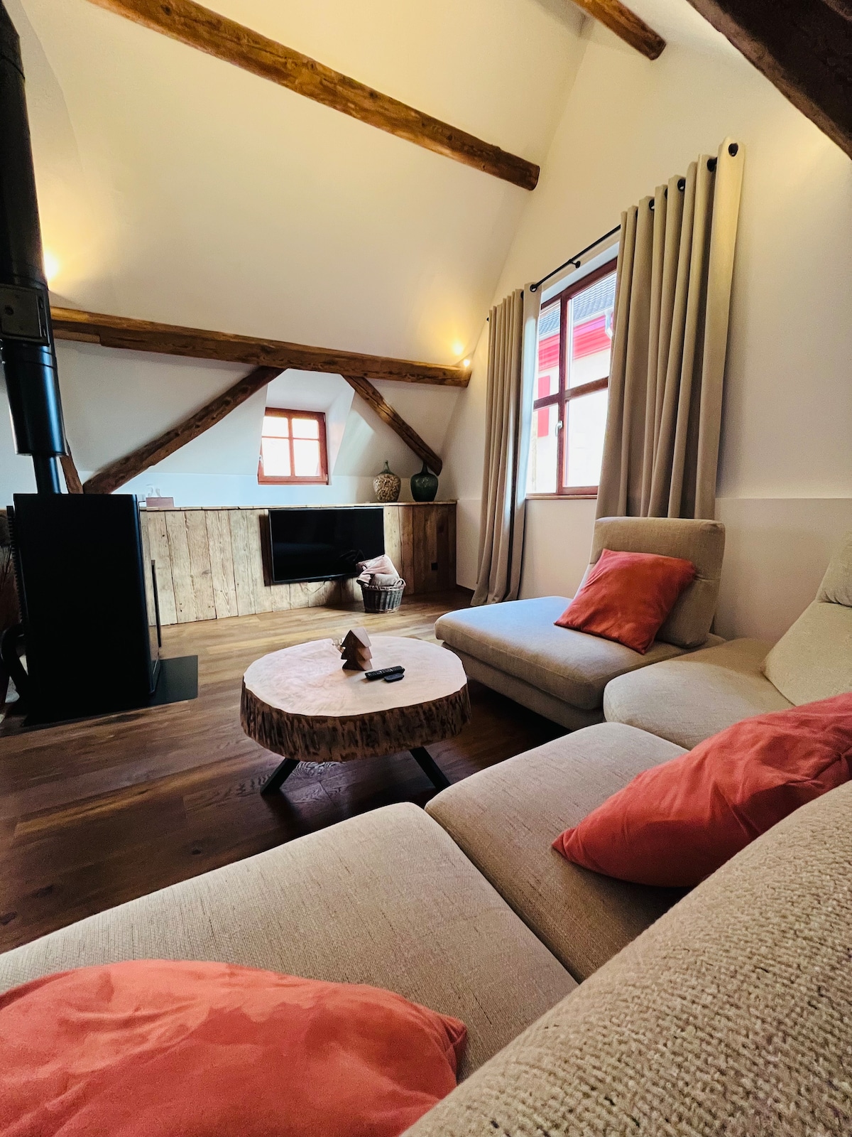 Discover our welcoming refuge nestled in Trois Épis, just a few steps from Colmar, in the heart of Alsace. Benefiting from breathtaking views of the majestic mountains that surround you, this 50m2 space invites you to an experience of total relaxation. With an elegant and neat atmosphere, our home has been carefully designed to combine comfort and functionality. Despite an area of 50m2, every corner has been optimized to make the most of the space.