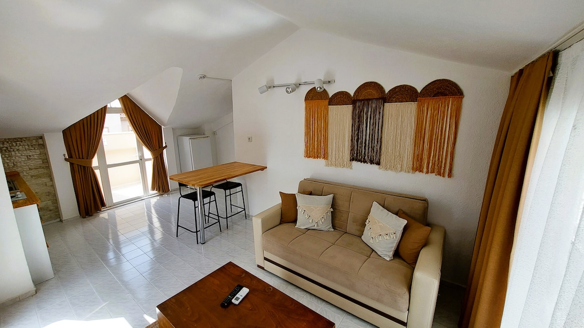 Daire 20 üniteli havuzlu bir apart otelin içindedir. En üst katta bulunan dairenin 1 balkonu vardır. Şehir merkezine 1 km, sahile 400 metre mesafededir. Hemen yakınında süper market, biraz ilerisinde perşembe günleri kurulan şehir pazarı vardır. Merkezî konumda bulunan bu sakin yerde sade ve rahat bir konaklamanın tadını çıkarın.