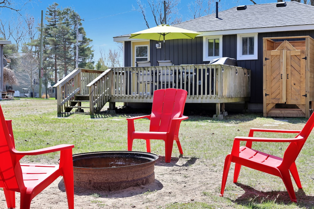 The Sandpiper Cottage -Ontario's beautiful southwest coast, Turkey Point -1 of 5 Hartgill Vacation Homes -Modern, open-concept cottage -One block walk to the sandy beach -AC & Heat -Wood bonfire -Private yard space, not connected to others -Covered patio with lights -BBQ w propane -Walking distance to shopping, LCBO, restaurants -Connected w The Tiki Room -Private parking for 2-3 vehicles -Grassy yard -Dishwasher, Washer/Dryer -Rainshower, tub -Quiet, no disturbances from the connected cottage