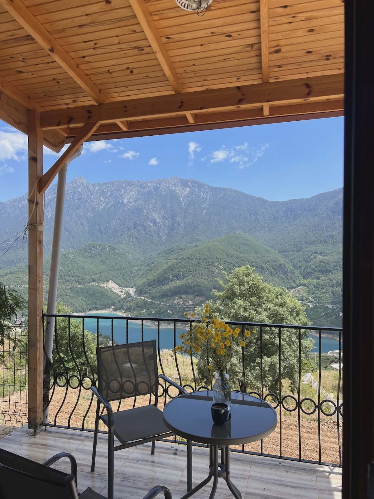 Mudurnuya bagli bir köyün, dag ormaninda ahsaptan yapilmis, etrafinda yalniz orman olan her seyden uzak ama konforlu ve modern dosenmis, harika yuruyusler yaparak ormani kesfetmek icin guvenli ve konforlu bir alan. Hem huzur hem de biraz macera diyorsan bu deneyimi yaşamalısın. Evde bir tercih olarak , gunes paneli ile sinirli elektrik vardir...Işık için mum ışığı, ısınma için şömine, sıcak su için odunlu termosifon kullanıyoruz.