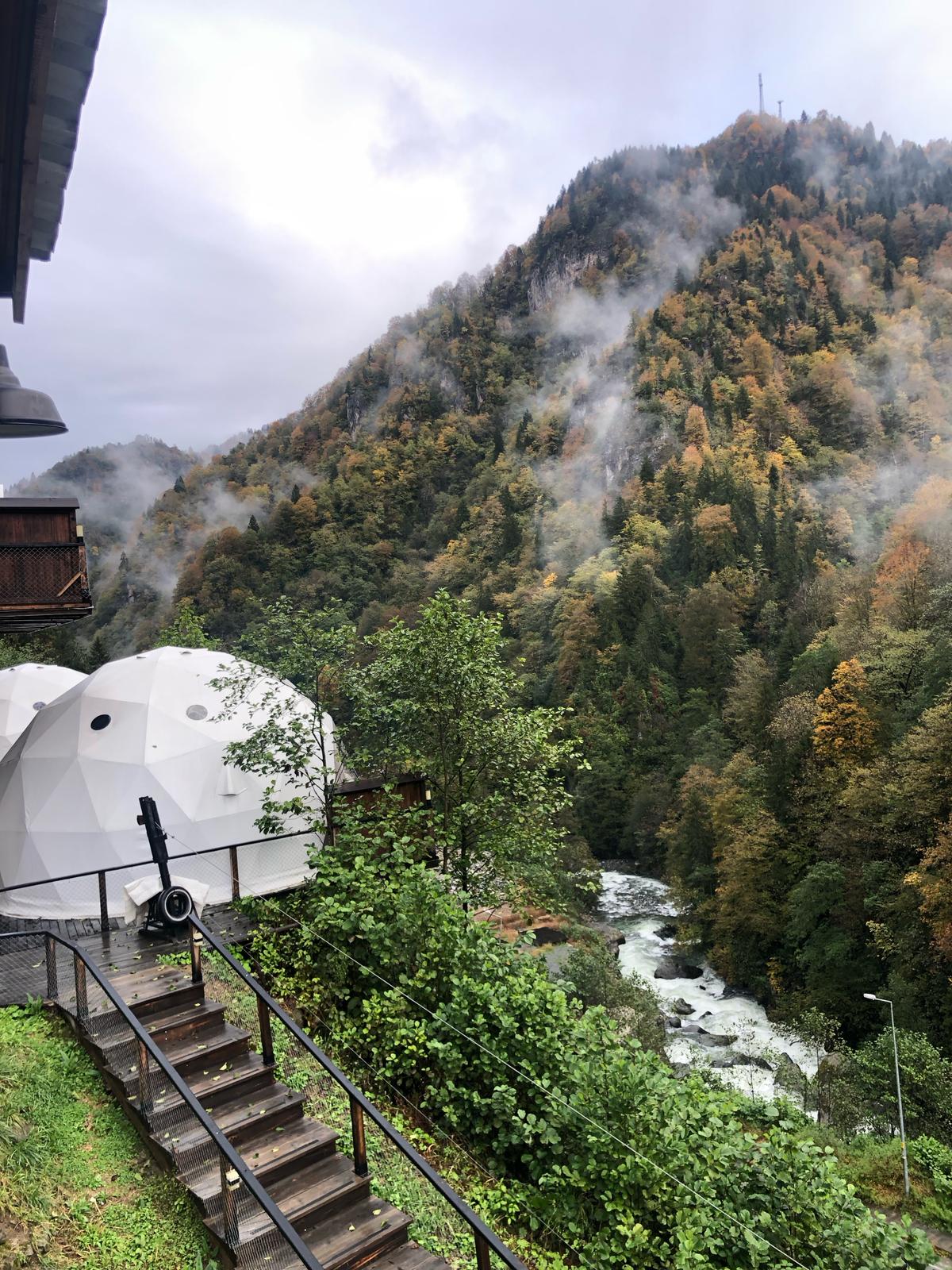 Dome odalarımızda gece uyumadan önce yatağınızda yıldızları izlerken, sabah uyandığınızda eşsiz nehir ve doğa manzarasına uyanacaksınız. Konum olarak denize 800 metre uzaklıktayız. Konaklama alanı içerisinde havuz ve aquapark vardır. Dileyen misafirlerimiz havuzu kullanabilirler. Konaklama merkezimizde ayrıca Termal Su şelalesi ve çamur banyosu da vardır. Tamamen aile işletmesi olan bu konaklama merkezinde kendinizi ev konforunda ağırlanmış hissederken doğanın kalbinde huzuru bulacaksınız.