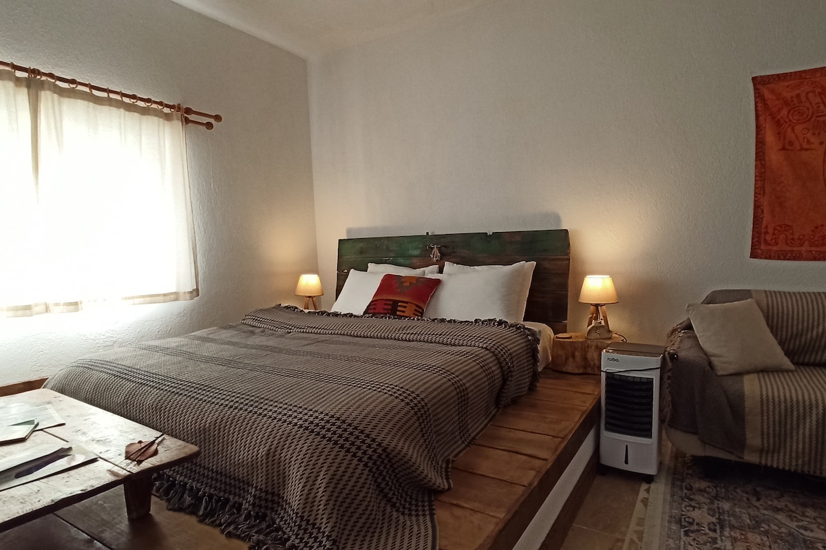 Live like the Flintstones in this cinema-perfect cave house kids love. Their room has 2 single beds & a cave bed nook, cave skylight, and shelves cut from the rock holding a variety of toys. Master bedroom with king bed, sitting room with TV & Wifi, and a fully-equipped kitchen and two bathrooms give this troglodyte house all the modern comforts.