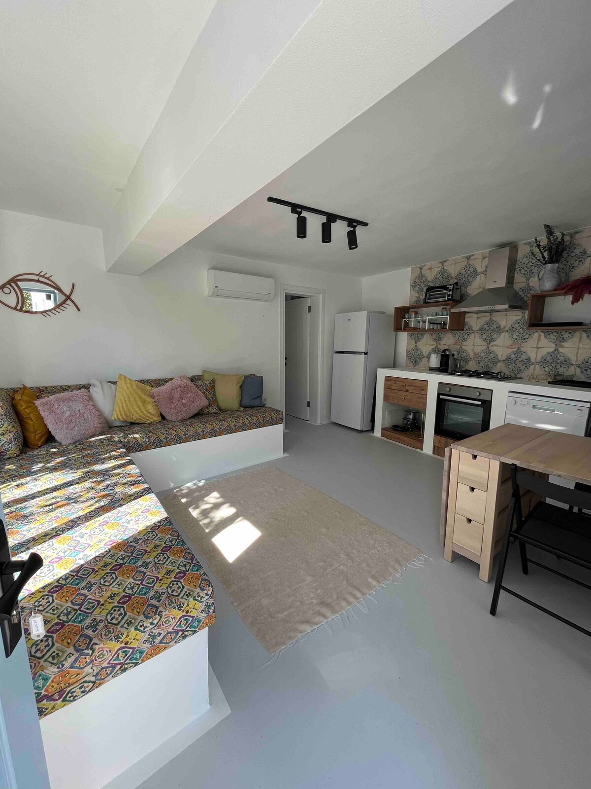 Our house is located in the center of Bodrum Marina. It is 2-3 minutes walking distance to entertainment places, cafes and 10-15 minutes walking distance to the public beach. It has its own garden entrance, there is a parking area for 1 vehicle. There is a private sitting area in the garden. It is a quiet peaceful house, located among the tangerine trees and in the heart of the city. Ev Bodrum Marinanin merkezindedir. Eğlence mekanlarına, kafelere 2-3 dakika, halk plajina 20 dakkadir yuruyerek.