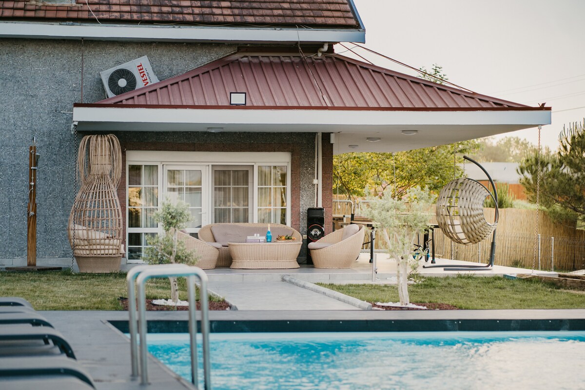 Muhteşem bir doğa içerisinde huzur dolu bir villa. Doğa yürüyüşü yapabilir,bahçesindeki meyveleri tüketebilir ve ayrica verandasında hoş vakit geçirebilirsiniz. Dış jakuzi, dış sauna, şok duş,hamak,salıncak, fitness odası, berbekü,manzaralı barve şelaleli havuzun size yaşattıkları ile anda kalmak isteyeceksiniz. İsteğe bağlı barbekü(et ve meze), gözleme ve köy ekmeği hizmeti verilmektedir.Hava limanına 20km, markete 300m ve denize 8km uzakliktaki özenle dekore ettiğimiz sıcacık bir mekan...