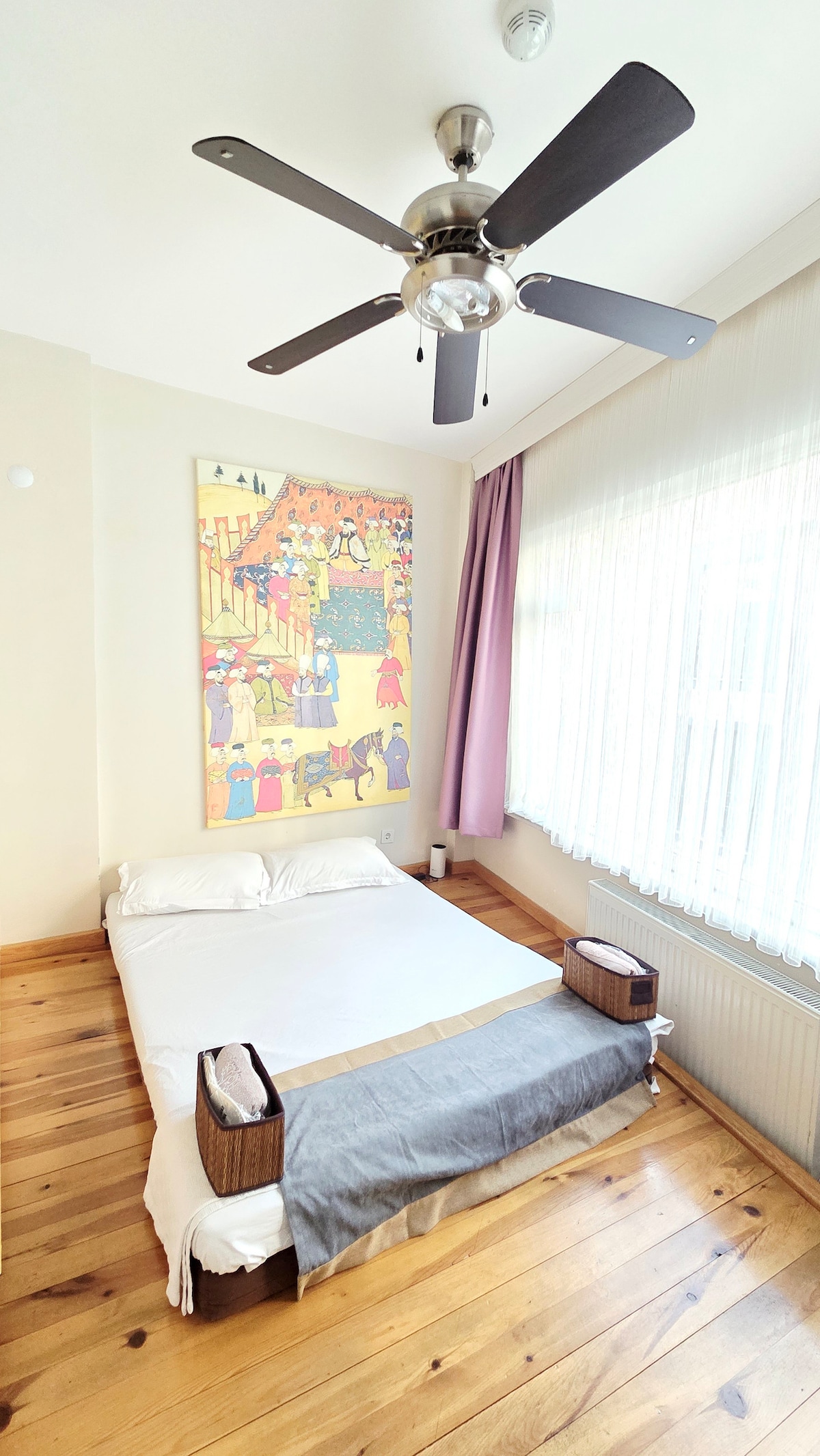 (IF NO AVAILABILITY HERE, WE HAVE A VERY SIMILAR ROOM: ) The room with inverter AC. Hello dear guests Welcome to our place and we wish you the best stay in beautiful İzmir... We are right in the middle of the city. *Breakfast, (homemade organic Turkish breakfast) every morning is 100 TL extra Enjoy our nice cozy garden...