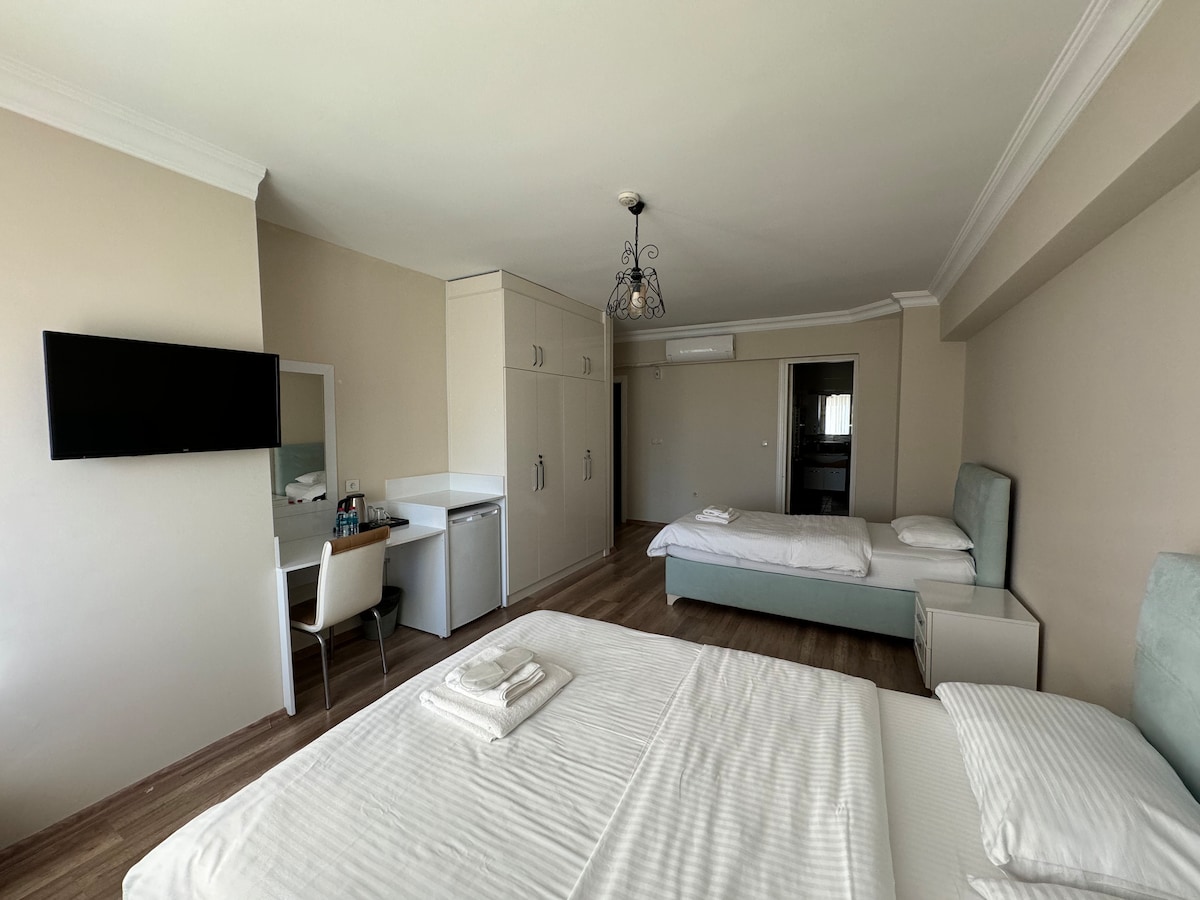 Our facility, which was put into service in 2023, has LCD TV, mini bar, air conditioning, hair dryer, wireless internet access and parking in all rooms. We have a total of 10 rooms, including 2 double standard rooms, 6 double rooms with sea view, and