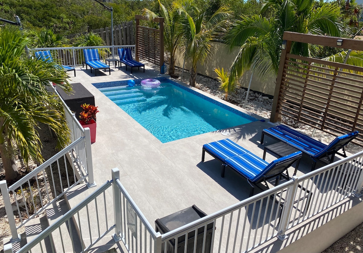 Sail Loft Port is the left side of our purpose-built guest duplex. Our Sail Loft duplex features two separate but identical efficiency suites, each one equipped with a King Sized bed, bath and kitchenette. The pool is shared with guests who may be staying in the other side. Wander down to the dock and use our SUPs and kayaks in the canal where you are guaranteed to see turtles. Fast WiFi lets you work from home if you must. Smart TVs with Netflix help you wind down after a day of fun.
