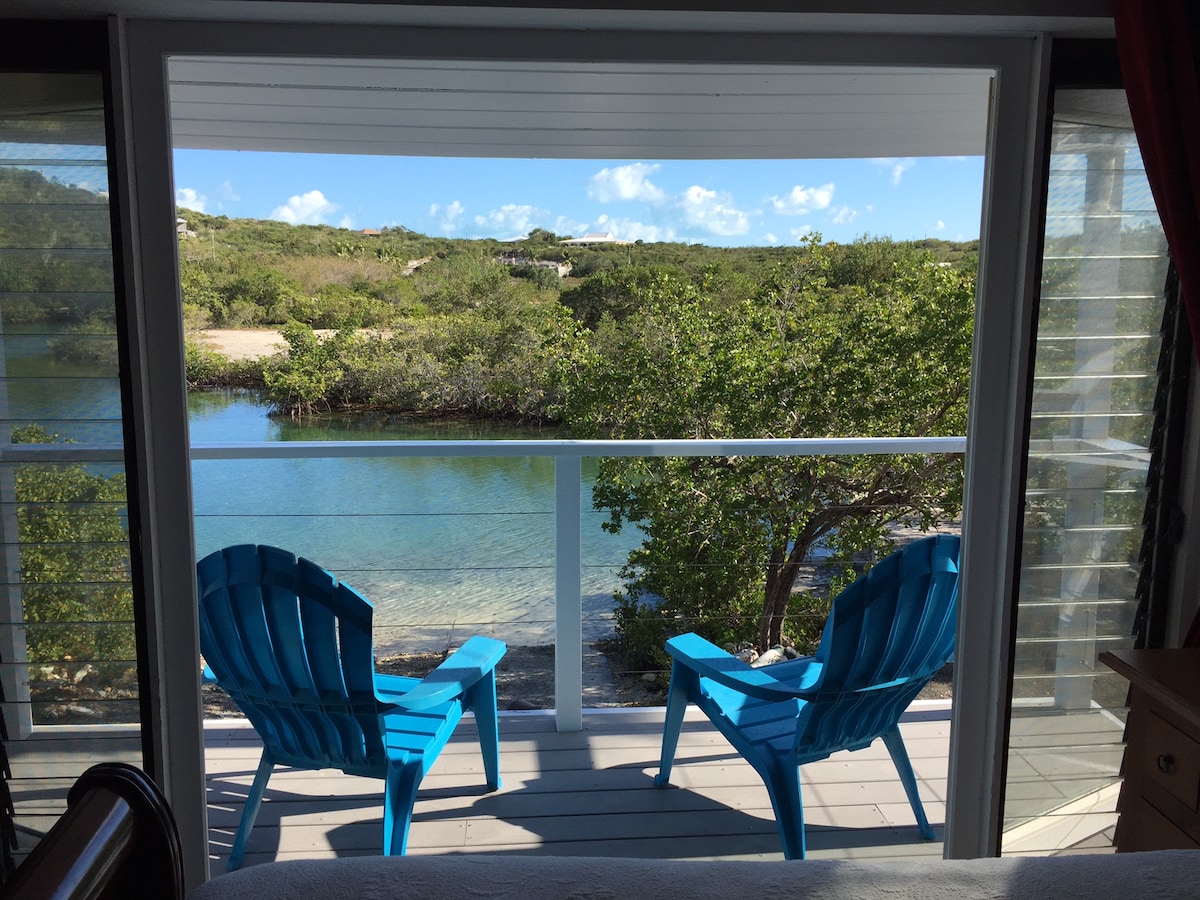 Captain’s Quarters is a newly renovated guest suite attached to our home, overlooking the Thompson Cove canal and within a 3 minute walk to the beach. You will enjoy your own private entrance, private terrace and private deck overlooking the canal. You are welcome to use our SUPs and kayaks, which are located on our guest dock. Book today for an ideal tropical escape to a tranquil area in Provo, TCI!