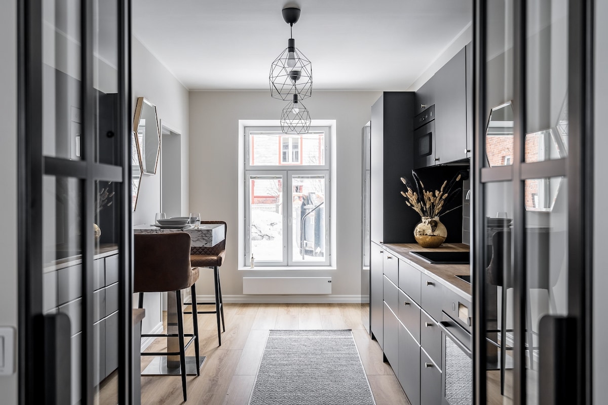 靠近市中心的木制两室公寓 + 私人停车位!
