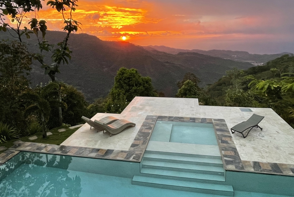 Vacation studio, incredible ocean & sunset views of the Peninsula and the Gulf of Nicoya, sunrises behind volcanoes and some of the highest mountains of Central America, incredible views of the virgin forest. There is access to a stunning pool with beautiful, spacy social areas. Good Life, Nature and Tranquility for the peace of mind just a short distance from the tourist center of Jacó and many other beaches! All the comforts will allow you to feel at home on top of the mountain.