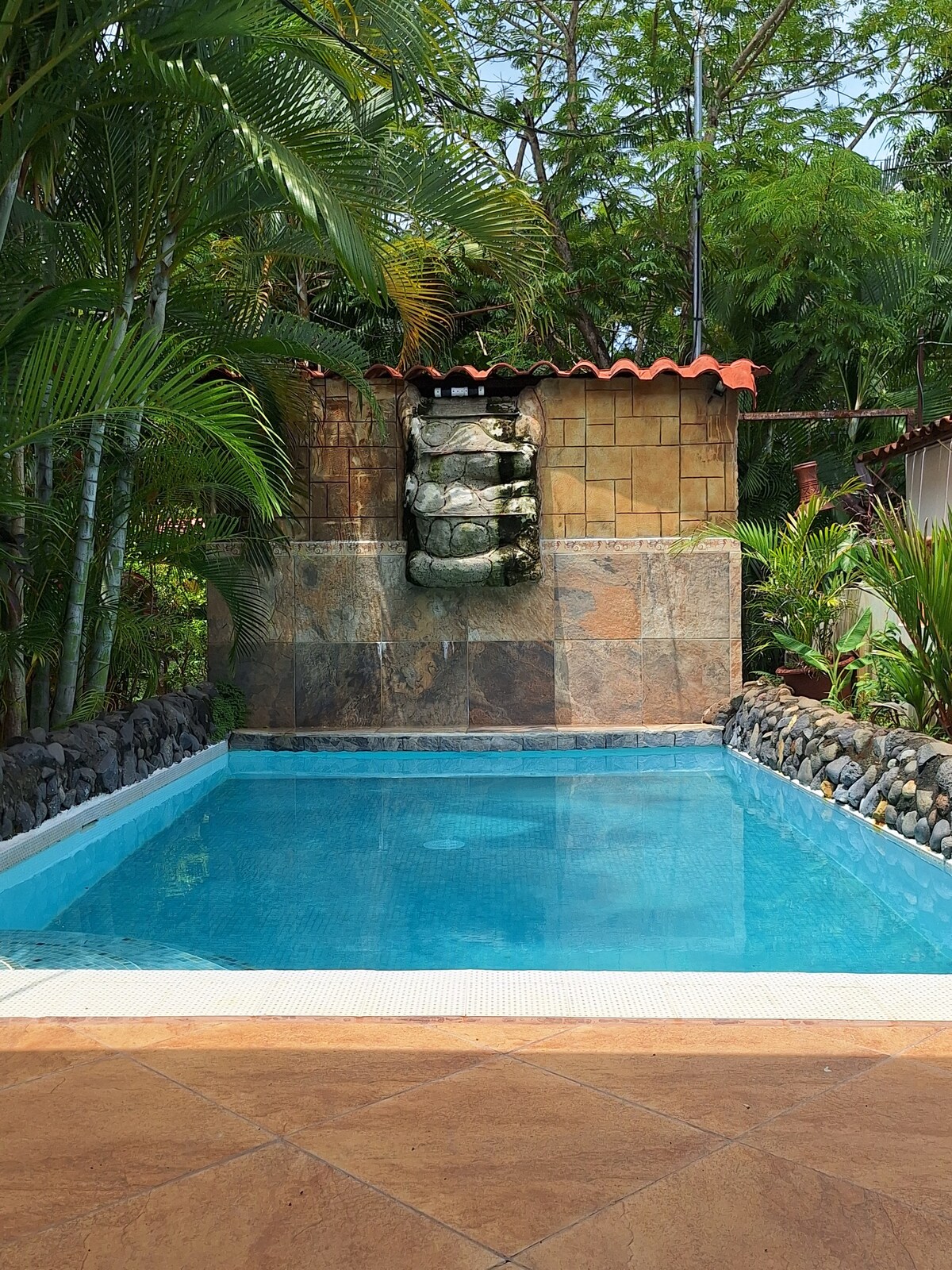 Staying at our Villa Helena de Hermosa vacation rental home near the beach in Playa Hermosa, Puntarenas province is like having your own private tropical resort retreat, perfect for large family and friend reunions. It sleeps families of up to thirteen guests on regular beds among five bedrooms. Everyone will be able to be together to share experiences around a magnificent courtyard pool and terrace area, while having their own space to retire and rest after a day full of adventure.