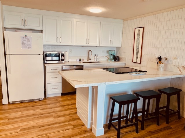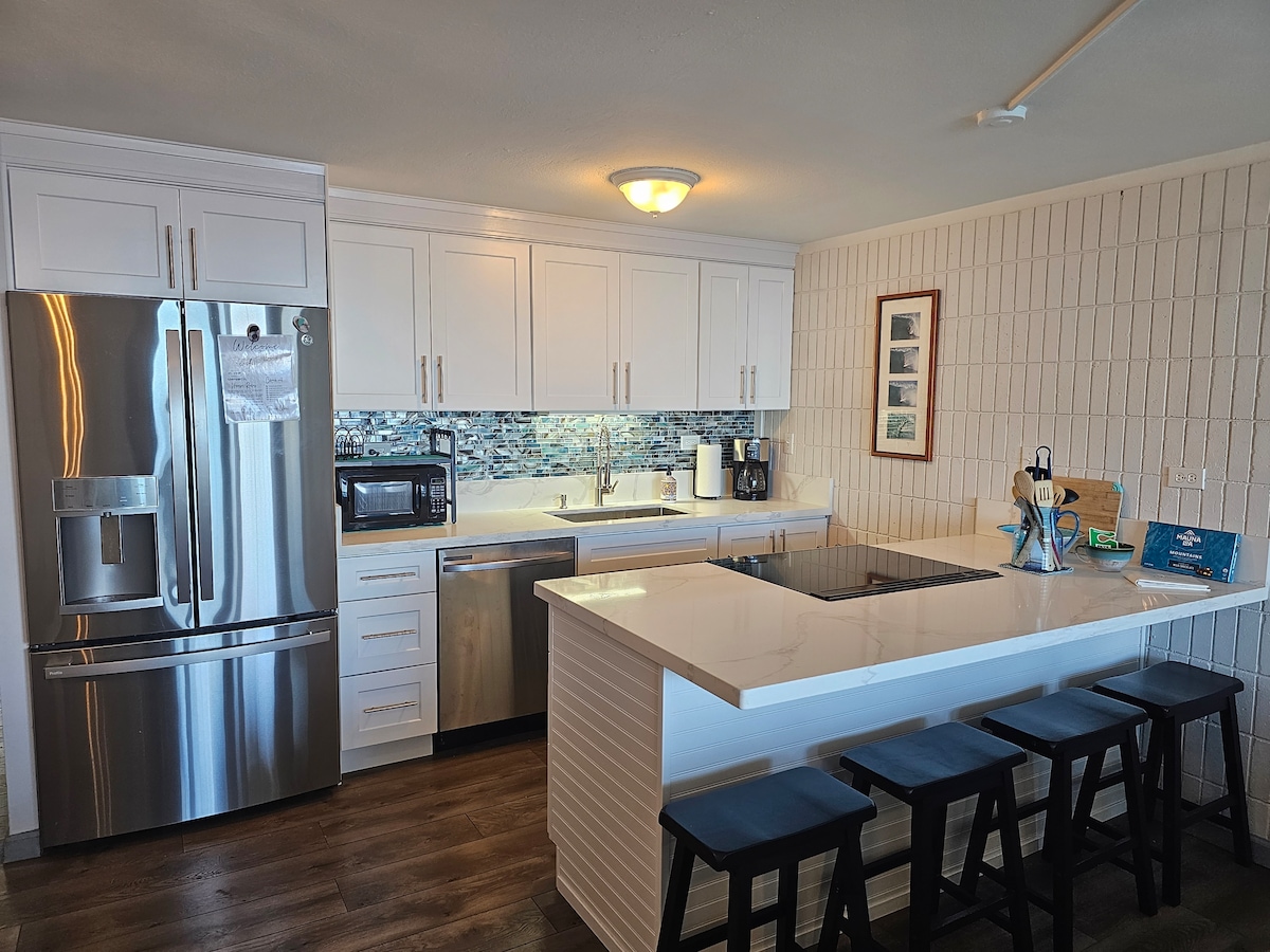 Welcome to the beach! Your little piece of paradise! This 1 large bedroom has a new king bed, and there is a bed in the living room as well. Right on a beautiful white sandy beach that is great for swimming, snorkeling, fishing & kayaking! Sea turtles & tropical fish are right out front! Fully equipped remodeled kitchen, washer/dryer & private lanai looking out at this spectacular beach & amazing ocean views! Incredible sunrises too! Pool, gym & BBQ area, WIFI, cable & onsite FREE parking spot!