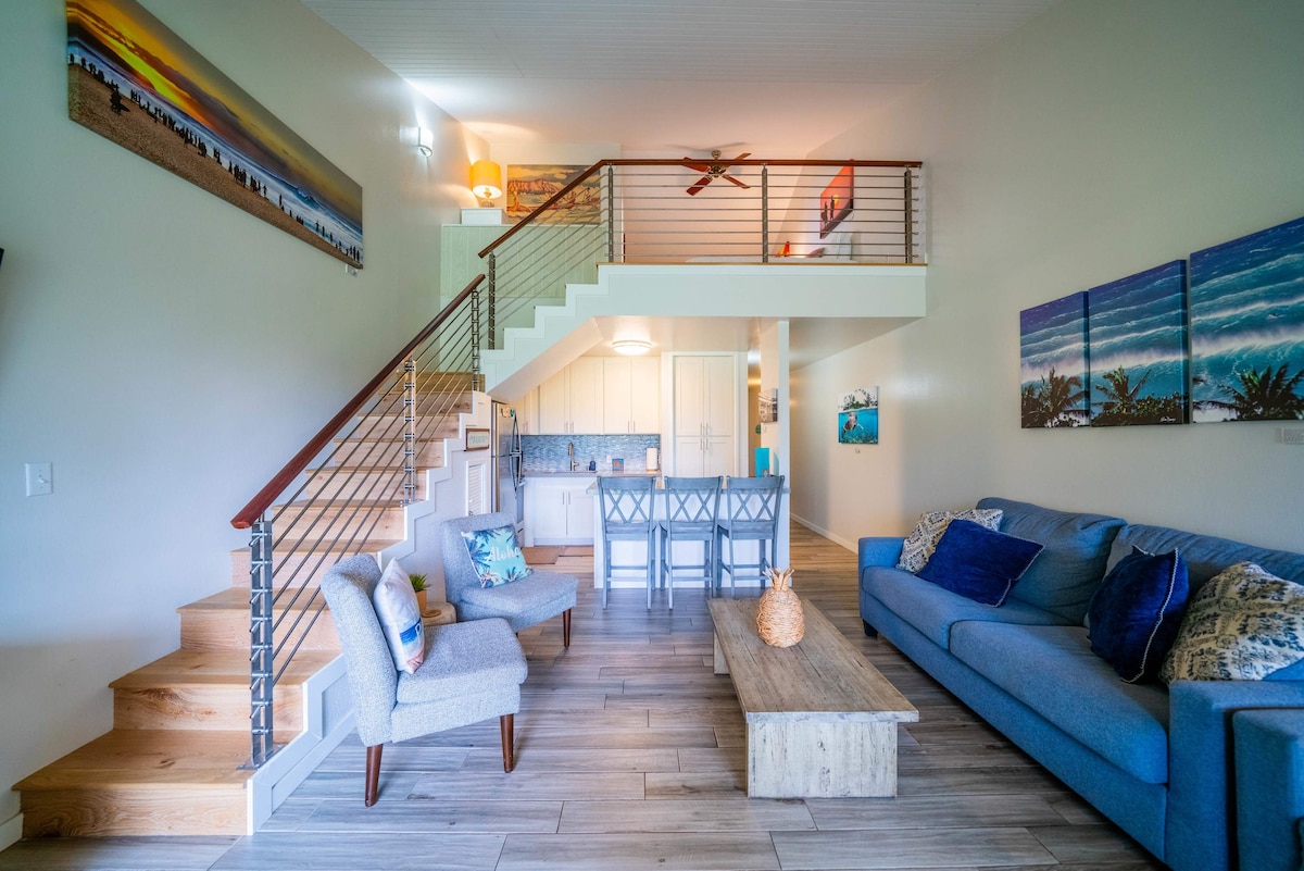 Legal Nightly Vacation Rental (No 30-day contracts) A cozy, island-style unit with a loft bed, perfect for an authentic Hawaiian getaway. The unit includes High speed WiFi, 65 inch Smart TV, Split unit AC, sauna, an outdoor shower, an outdoor gym, a sun deck, and private access. Located within walking distance to famous Waimea Bay and other beautiful spots, this space offers convenience, comfort, and island charm.