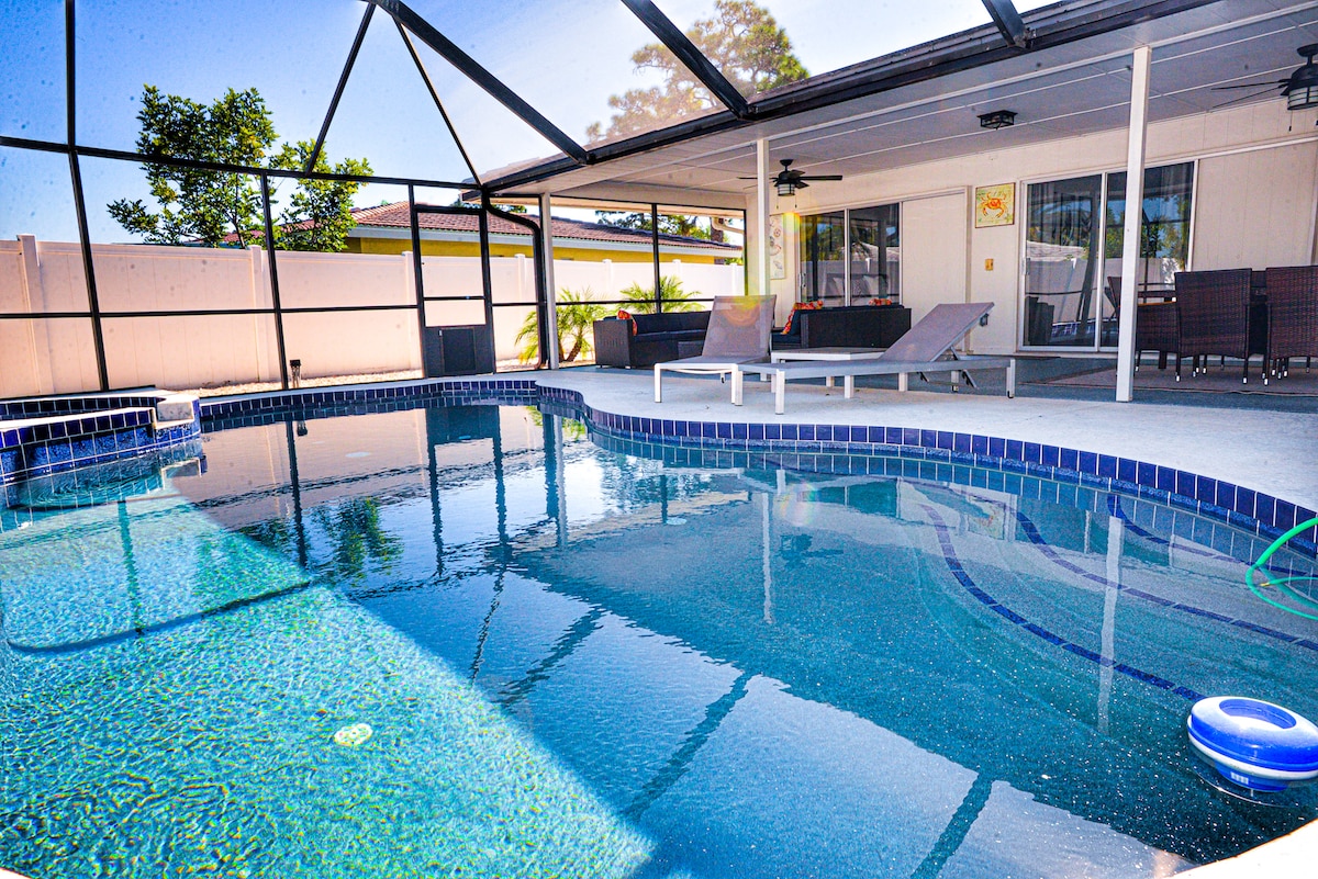 靠近Siesta Key的私人泳池+游戏室|可供9人入住