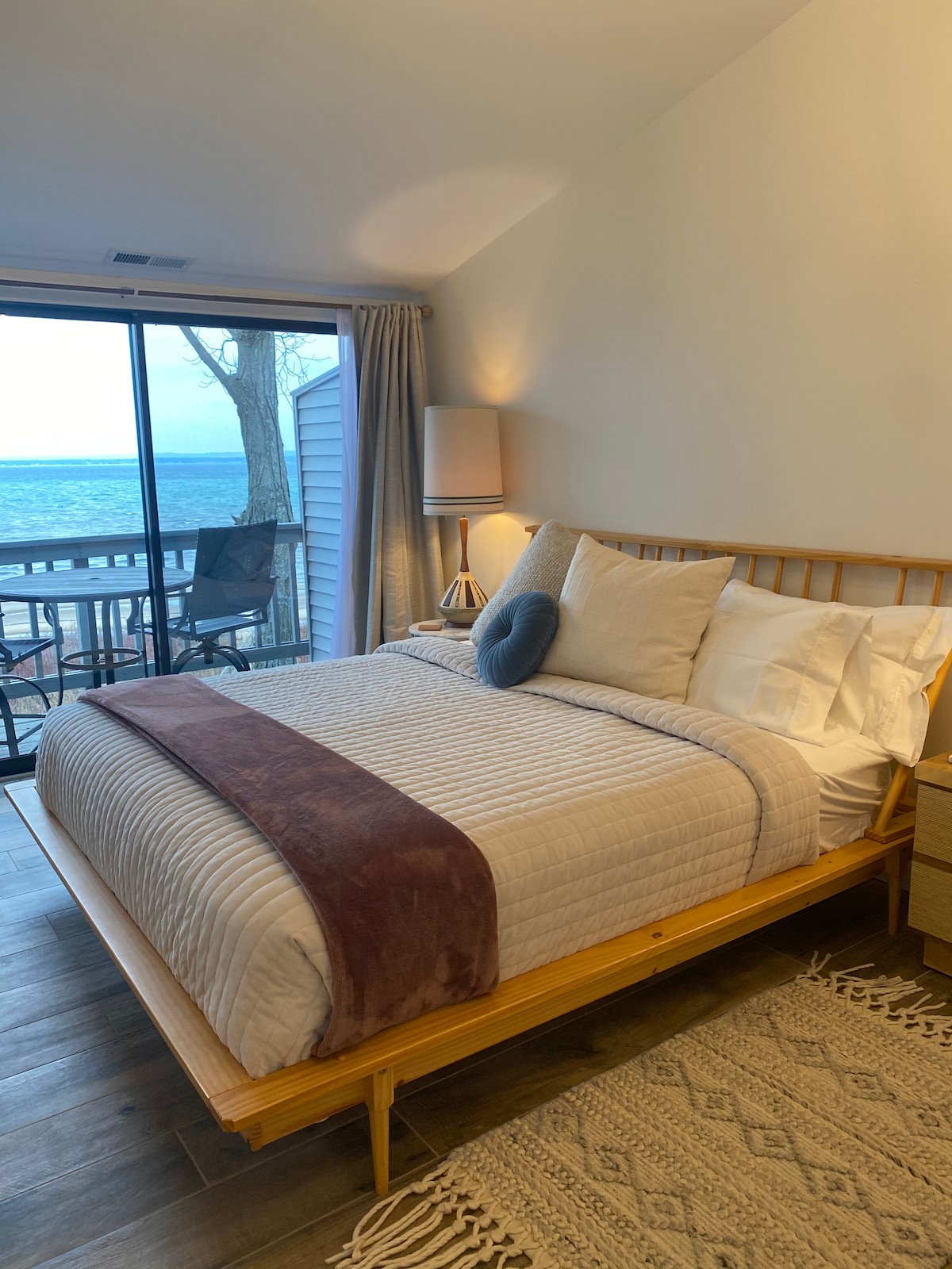 7 minutes to Equestrian Festival! Located on Traverse City's beautiful East Bay this has just been completely remodeled. Condo is right on the water! Minutes from downtown Traverse City, wineries, and so much more. Enjoy relaxing in the sun on 600ft of private sandy beach frontage or rent a kayak, jet skis, or paddle board. This studio style condo is an end unit with gorgeous views of the bay. This condo has an amazing shower with rain head and 3 body sprays!