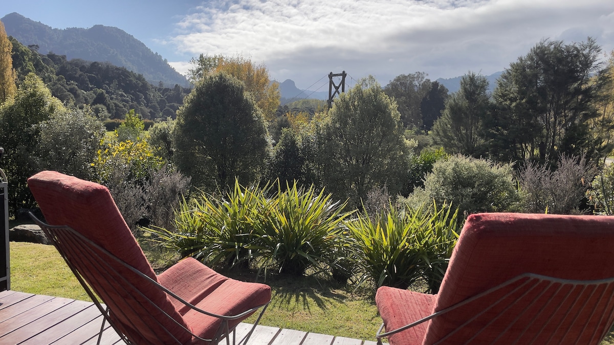 Riverhaven Cottage is situated in a peaceful rural setting yet only 5 minutes from Thames township. You will enjoy hill and valley views from our purpose built Guesthouse. Swim in the beautiful clear river, take one of the many hikes through pristine native bush or bike the Hauraki Rail Trail, it's all on our doorstep. A comfortable drive away are the east coast beaches, including Cathedral Cove and Hot Water Beach. Just 1 hour 20 minutes from Auckland International Airport.