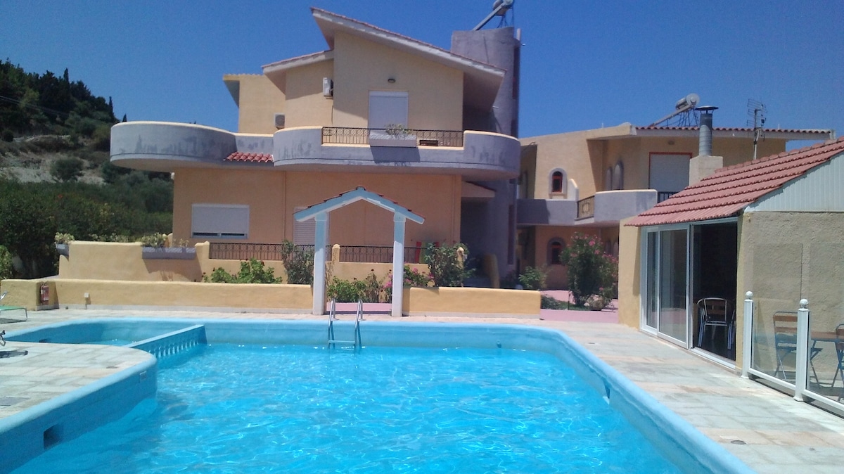 Newly built luxury pool villa (fully Air-conditioned and ceiling fans) A stunning 150 sqm luxury villa nestled in a lush green garden in the picturesque town of Ialyssos, just 7 km from both the airport and the town of Rhodes. A short 5-minute walk will take you to the beautiful Ialyssos beach, where you can explore excellent bars, restaurants, car rental services, supermarkets, a taxi station, and more. Relax by our pool, whether basking in the morning sun or enjoying a drink in the evening.