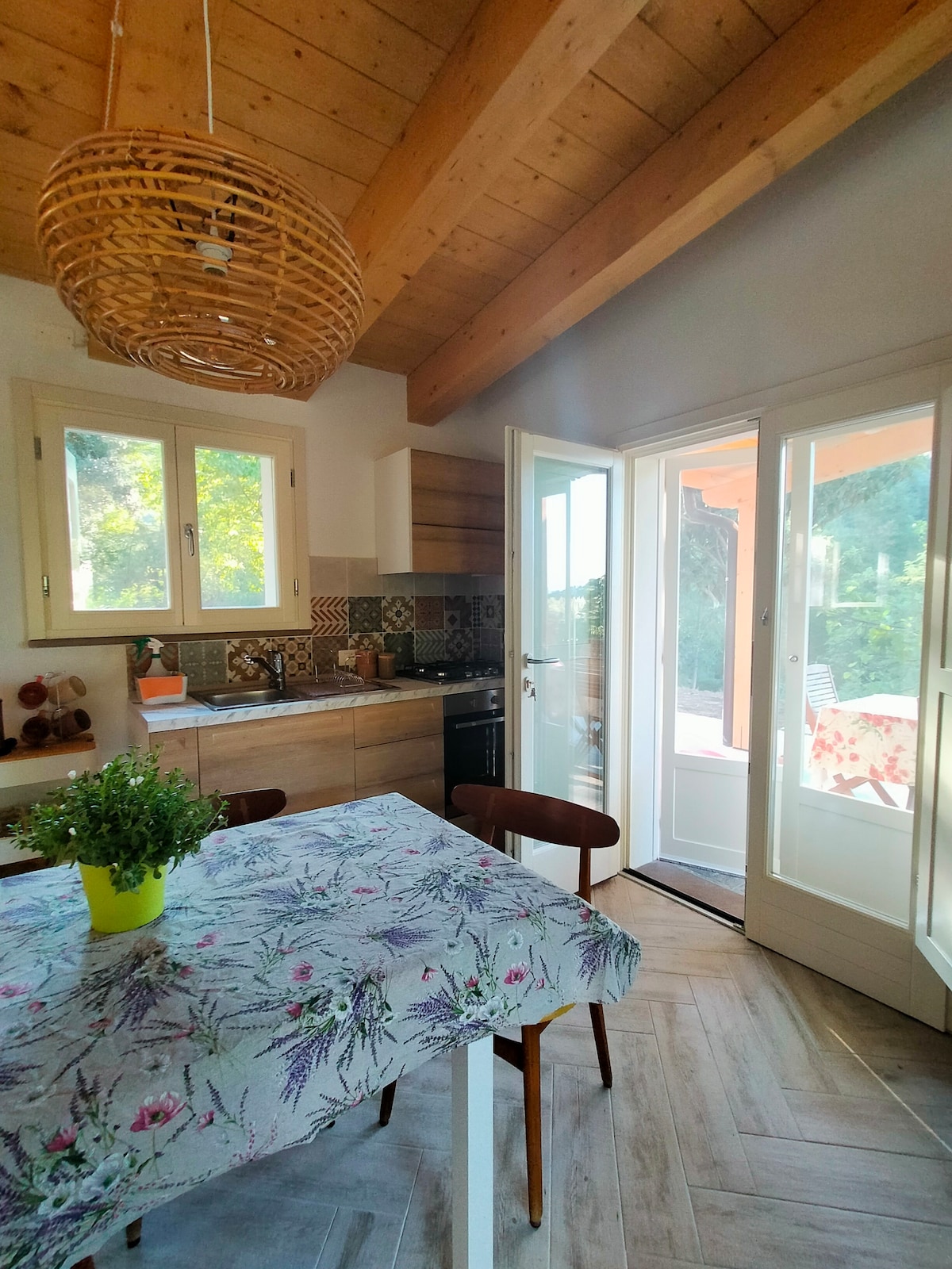 La camera è spaziosa e luminosa con ingresso indipendente e vista sul giardino. Negli anni abbiamo arricchito le camere con un piccolo angolo cottura (con lavandino, frigo, forno a microonde e macchinetta del caffè). All'esterno sono presenti tavoli e un solarium con lettini ed una cucina esterna.