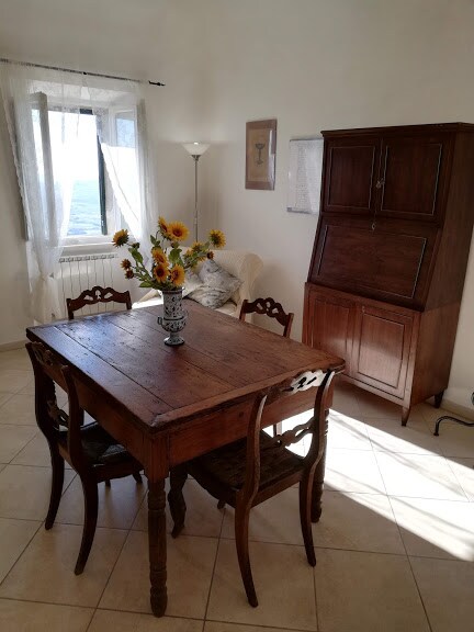 The apartment is located on the ground floor of our agriturismo, just 2 km from the sea and the center of San Vincenzo. It is the ideal solution for those who wish to enjoy a relaxing holiday surrounded by nature, tranquility, and beautiful views. The apartment hastwo bedrooms, a cozy living room, a bathroom, and a patio with sea view, perfect for outdoor breakfasts or for enjoying the sunset. The location is strategic: immersed in the Tuscan countryside yet close to the beaches and the town.