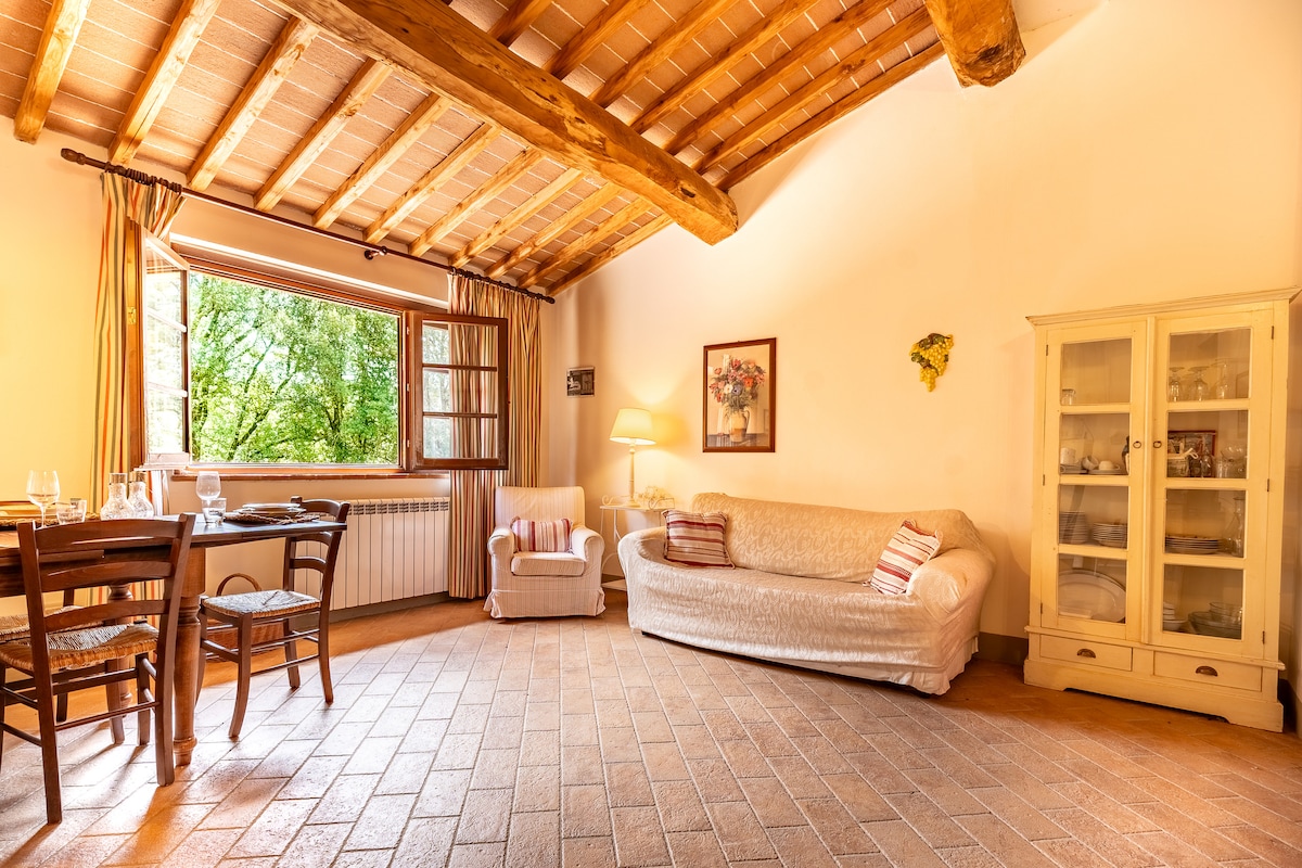 Borgo Paradiso is a stone farmhouse dating back to the 1920s. Originally conceived as a structure used as a farm shed, it was later enlarged and tastefully renovated by the current owner. A rustic-style dwelling with typical ceilings with exposed beams and antique terracotta floors, yet welcoming and comfortable, completed by a refined dependance used as a wellness area and equipped with a large Jacuzzi for 4 people, sauna and solarium.