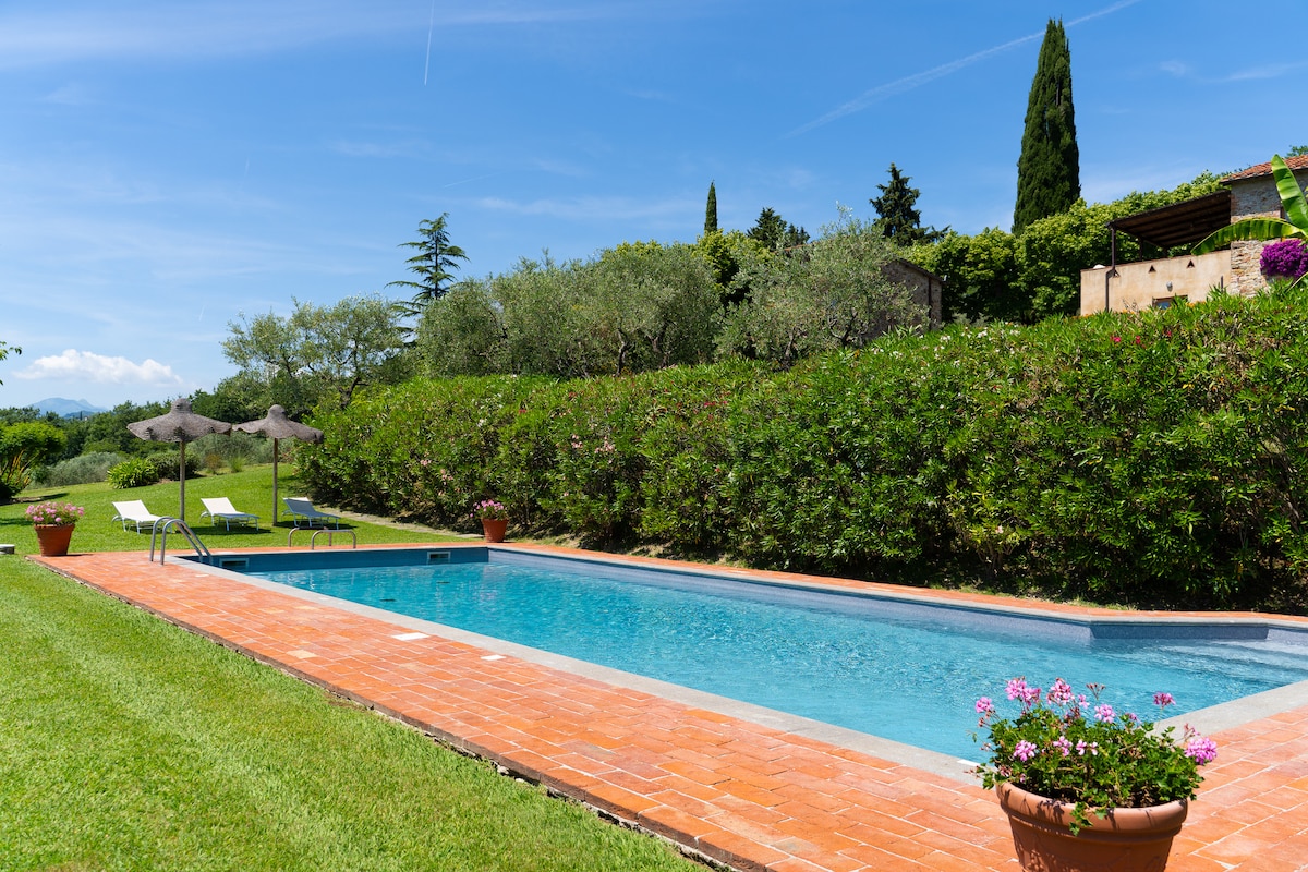 Villa Bella is a Charming Tuscan villa with breathtaking panoramic views, a private pool, and complete peace and privacy. Relax in the bright living room with two large windows overlooking olive groves, cook in the fully equipped kitchen, and unwind in four beautifully furnished bedrooms, including a master suite with a spacious shower. Enjoy the 30 sqm terrace, private parking, and private entrance. A perfect year-round retreat for soaking up the magic of the Tuscan countryside near Lucca.