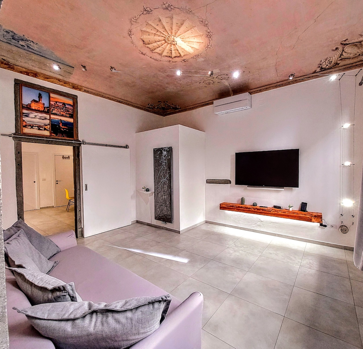 A luxury apartment that blends traditional elements with all the modern comforts and some contemporary wall art. The apartment is centrally located in the upper part of town, only around the corner from the main square, in the limited traffic area. You can drive close by to download the luggage. The closest free car park is located at less than 10 minutes walk. Please note that to reach the house you need to walk a fairly steep street: it may not be ideal for those with mobility problems.