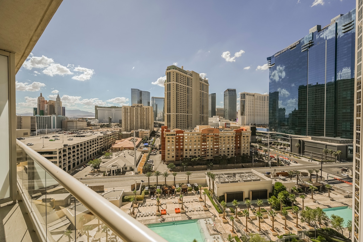 C7M2 Studio StripView/Balcony/Pool/No Resort Fee
