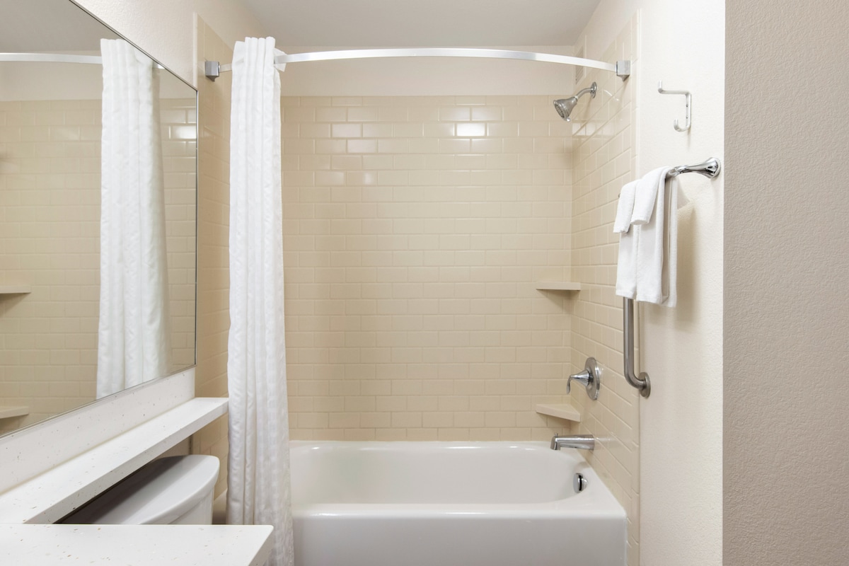 Boutique-style room near Disneyland®! Enjoy a clean, modern space with 1 Queen bed, private ADA-accessible bathroom available upon request, free Wi-Fi, and free parking. Designed for comfort and convenience, with accessibility features to ensure every guest enjoys a seamless stay. Walk or rideshare to Disneyland® Resort or the Anaheim Convention Center. As an authorized Disneyland® Ticket Seller, save up to $25 on multi-day park passes.