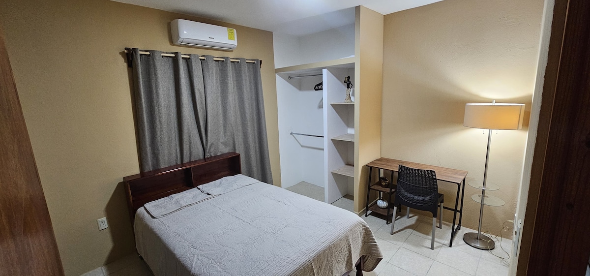 Disfruta de una habitación con cama Queen size, baño privado y aire acondicionado. Este alojamiento cuenta con una amplia sala y cocina con todo lo necesario para disfrutar de tu estancia. Recibimos mascotas Las reservaciones son únicamente por la aplicación. A 1 km encontrarás un mercado con comida típica de la región, tiendas de conveniencia y restaurantes. Estamos a 20 minutos de la playa de Tuxpan y 3 minutos del centro Contamos con 1 cajón de estacionamiento privado.