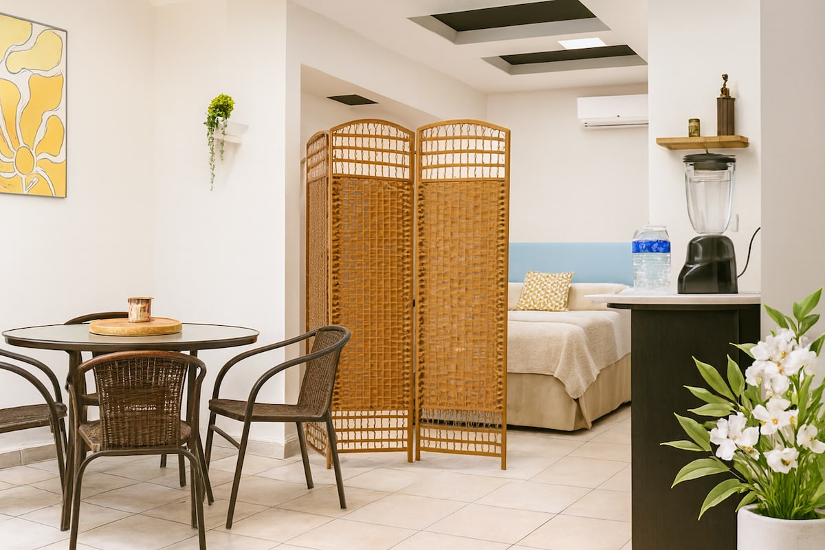 Acogedor departamento para 3 huéspedes, con WiFi rápido, cocina equipada, aire acondicionado y estacionamiento gratis. A solo 10 min del centro y 15 min de la playa, cerca de restaurantes, supermercados y atracciones locales