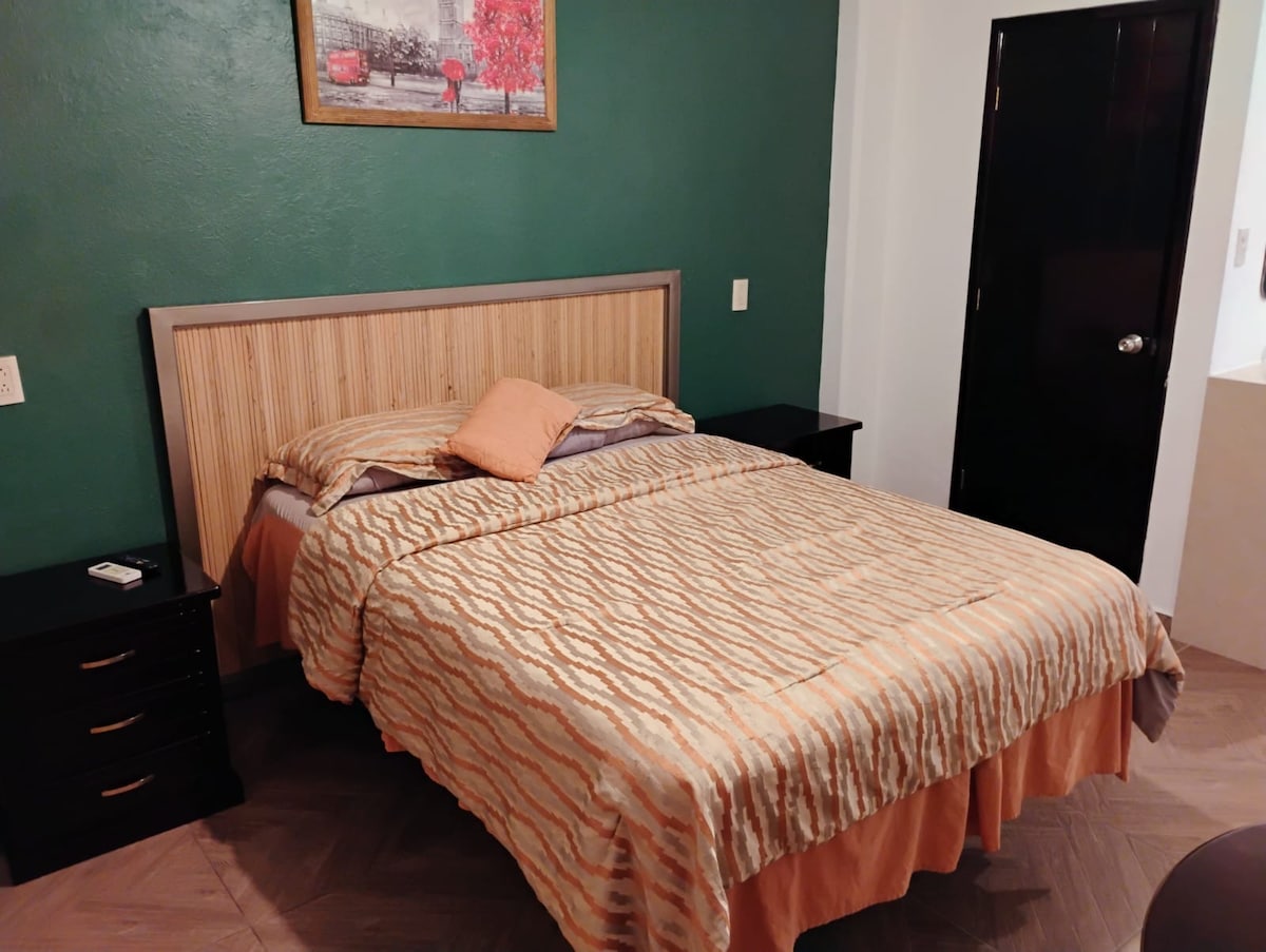 Disfruta del fácil acceso a tiendas y restaurantes desde éste encantador lugar para hospedaje a unos pasos del Parque Reforma. Económico y muy higiénico! Habitación sencilla con una cama matrimonial para dos personas.