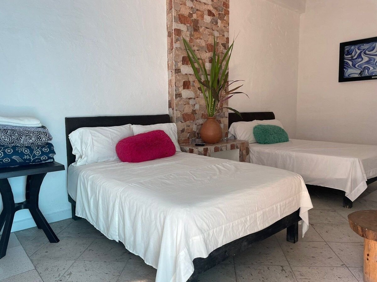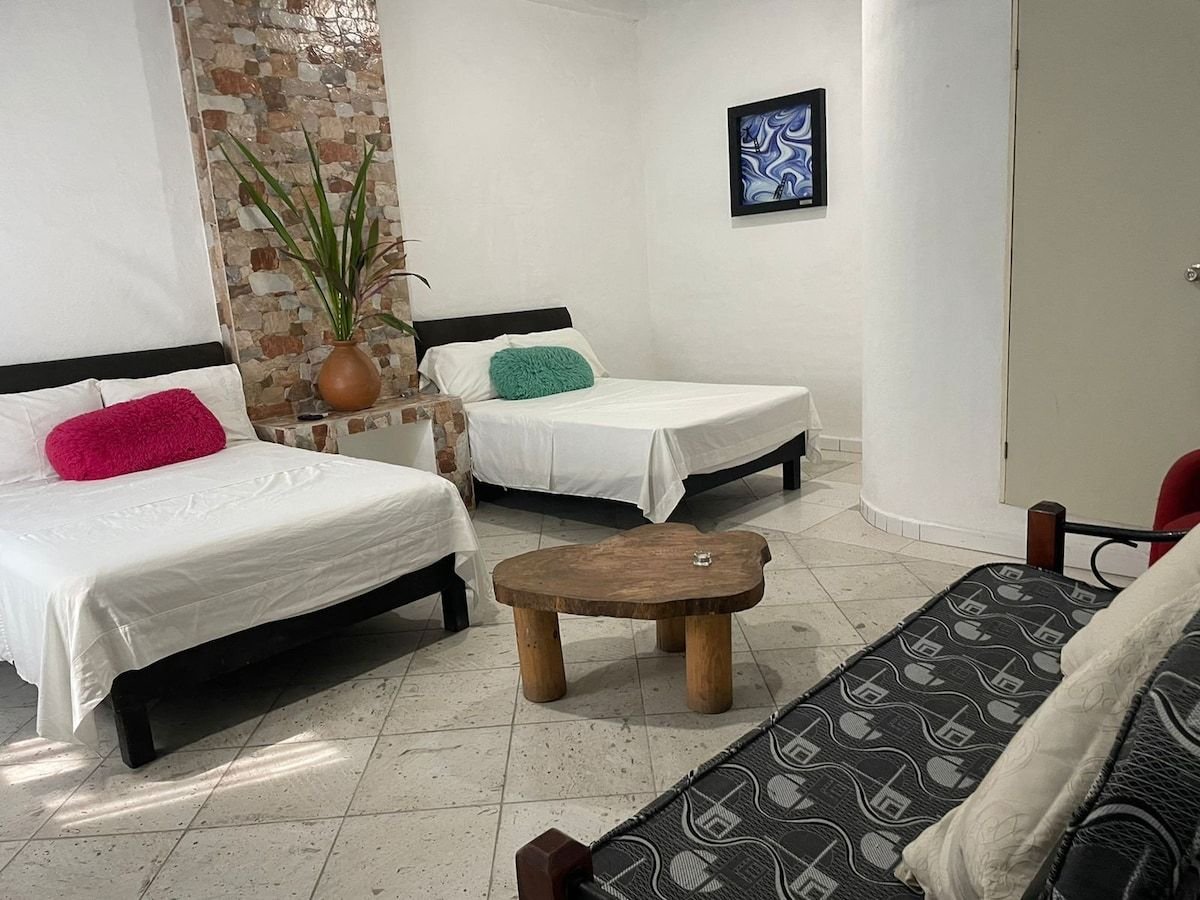 Beautiful house on the top floor in Tuxpan Veracruz, 20 minutes from Tuxpan beach, 45 minutes from Tamiahua beach, 10 minutes from Boulevard or downtown. Perfect for families or large groups of people. All the services included WiFi and TV. The kitchen has a refrigerator, stove, microwave, and dining table. 3 bedrooms, 1 KS bed, 2 Queen beds, 2 Single beds, 2 sofa beds 2 bathrooms They have air conditioning and common areas with pedestal fans. *invoices are not issued