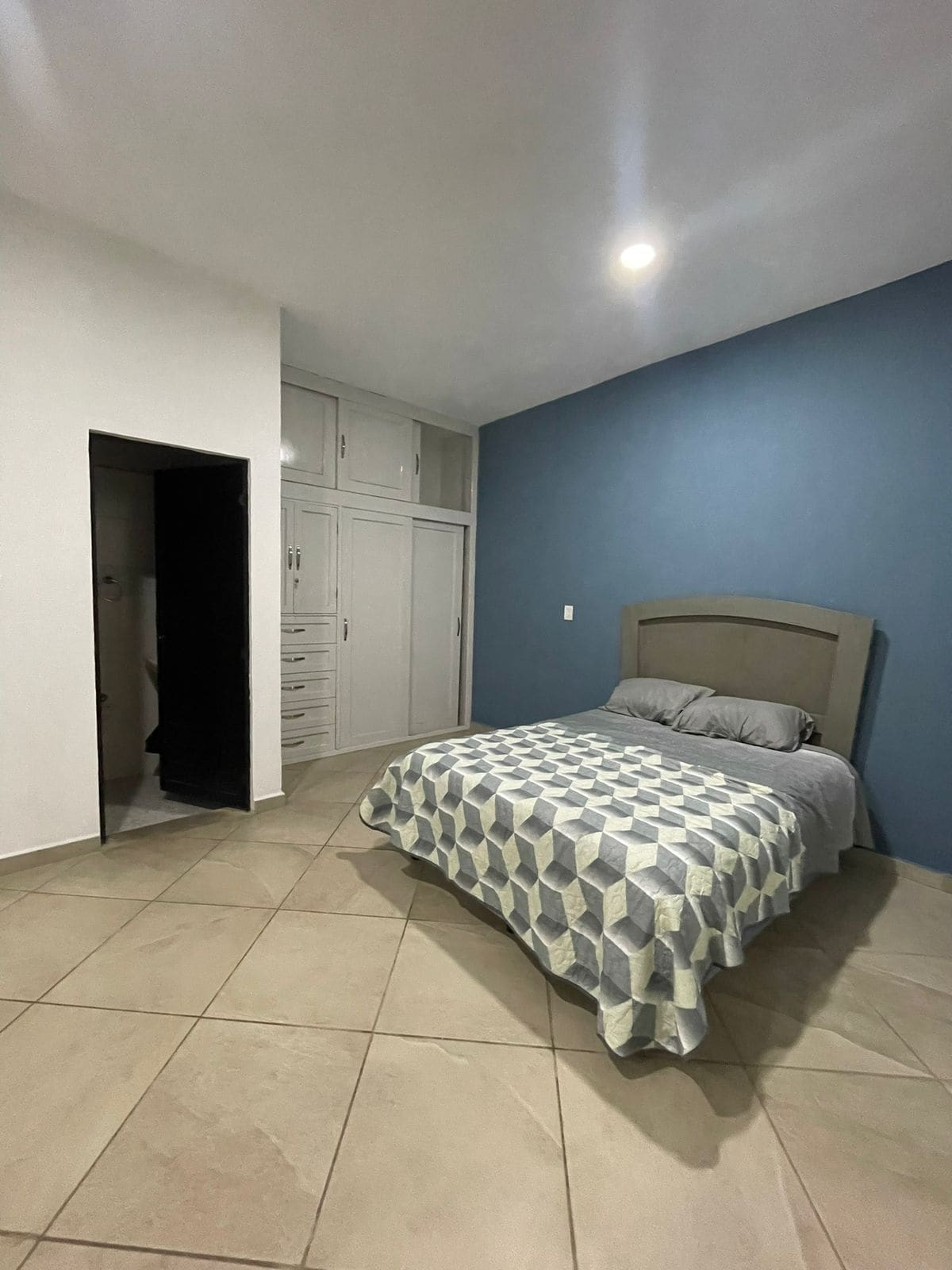 Diviértete con toda la familia en este alojamiento, de 2 recámaras una recámara cuenta con litera cama matrimonial e individual, (las 2 recámaras climatizadas) toda equipada con cocina, integral, sus accesorios para cocinar, refrigerador, área de lavado, sala de estancia (Climatizada) parrilla para azar, TV (cuenta con Netflix )area para trabajar, mesa de jardín, áreas verdes, estacionamiento para 1 auto