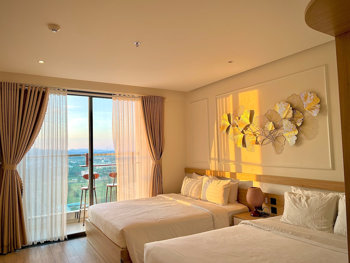 Trải nghiệm kỳ nghỉ đáng nhớ cùng gia đình trong căn hộ khách sạn rộng rãi với hai giường lớn dành cho bốn người. Từ đây, bạn có thể ngắm một phần biển xanh và toàn cảnh thành phố rực rỡ. Nội thất cao cấp được chọn lọc tỉ mỉ, kết hợp giữa sang trọng và ấm cúng, mang đến không gian lý tưởng để cả nhà thư giãn và tận hưởng sau một ngày khám phá. 🌅