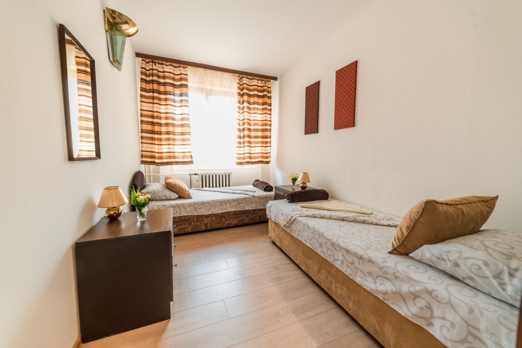 The apartment is located close to the Pannonica lake, historical center and city park. The bakery and supermarket are in range of 100m. The two room apartment, suitable for 4 people provides a fully equipped kitchen, bathroom and an air conditioning. Off-street parking and a private garage are available. An airport is 15 min drive from Pannonica Suite. A private transport by car can be arranged by considerable prices to guests upon their arrival and departure.
