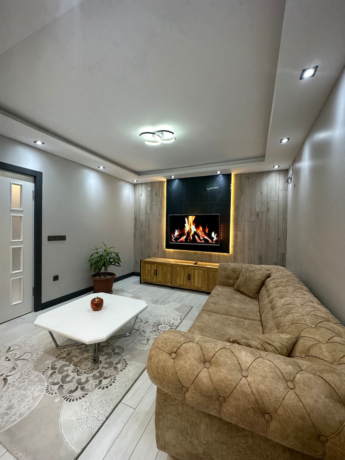 Bu huzurlu konaklama yerinde ailece dinlenebilirsiniz.Hava alanına 5 dakika mesafede muhteşem bir konumda .Dünya mutfaklarının restoranlarını içnde barındıran lens yaşam merkezinin içinde huzurlu bir daire