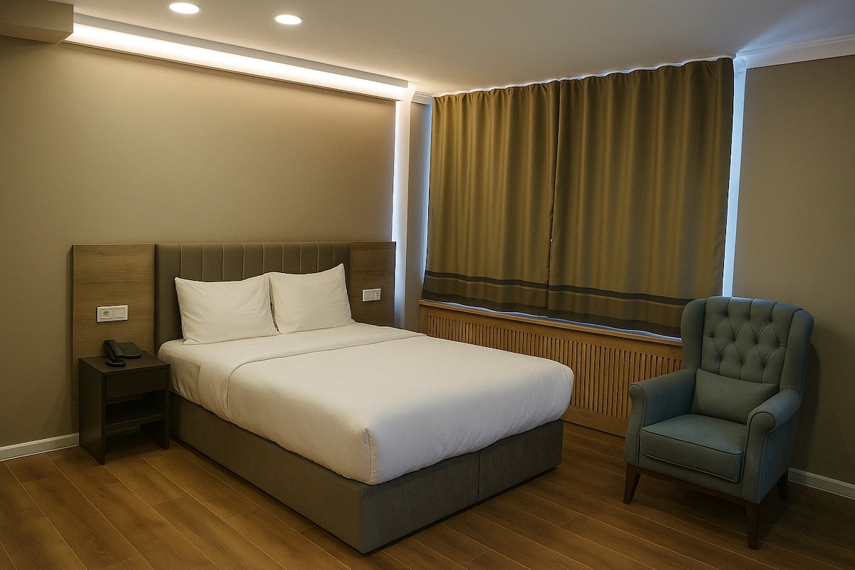 Misafirlerine sakin, konforlu ve özenle tasarlanmış bir konaklama deneyimi sunan butik otelimizde 1+1, 2+1 ve 3+1 oda seçenekleri bulunmaktadır. Kısa süreli konaklamalardan aile tatillerine kadar farklı ihtiyaçlara uygun odalarımız, ev rahatlığını otel hizmetleriyle birleştirir. Merkezi konumu, temizliği ve samimi atmosferiyle kendinizi evinizde hissedeceğiniz bir ortam sunuyoruz. Sessiz, huzurlu ve güvenli bir konaklama arayanlar için ideal bir tercihtir.