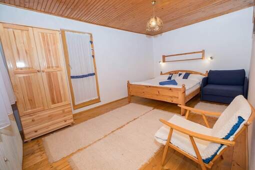 A cottage right by the Orava dam with a unique sauna is part of Slovak cultural heritage and thus protected. Fishing, swimming, boating, horse riding, hiking or just relaxing under the trees with the view of "Birds island" with more than 2000 birds or "Slanica island" with a gallery on it. Two apartments, a modern bathroom, and a big living room with a fully equipped kitchen. The house is 150+years old - it is cozy, freshly reconstructed, and well-maintained & equipped. No TV, fast internet.