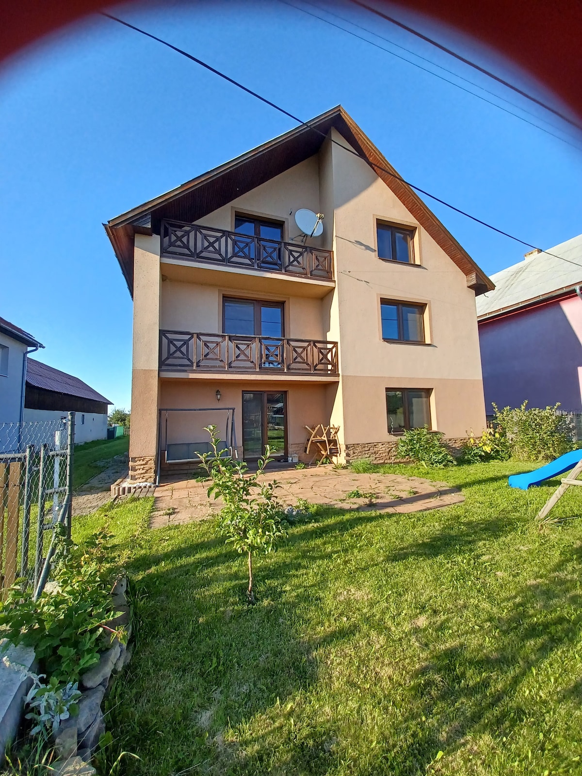 IG: chata_oravienka Útulná chata v chatárskej oblasti obklopená stromami má všetko, čo potrebujete na pohodlný pobyt. K dispozícii sú 3 spálne, 2 kúpelne, plne vybavená kuchyňa a obývačka s televízorom a s krbom a iným vybavením! Na chate je krásne priestranná záhrada s vírivkou, detským domčekom, záhradným grilom a altánkom. Priamo pred chatou sú parkovacie miesta.